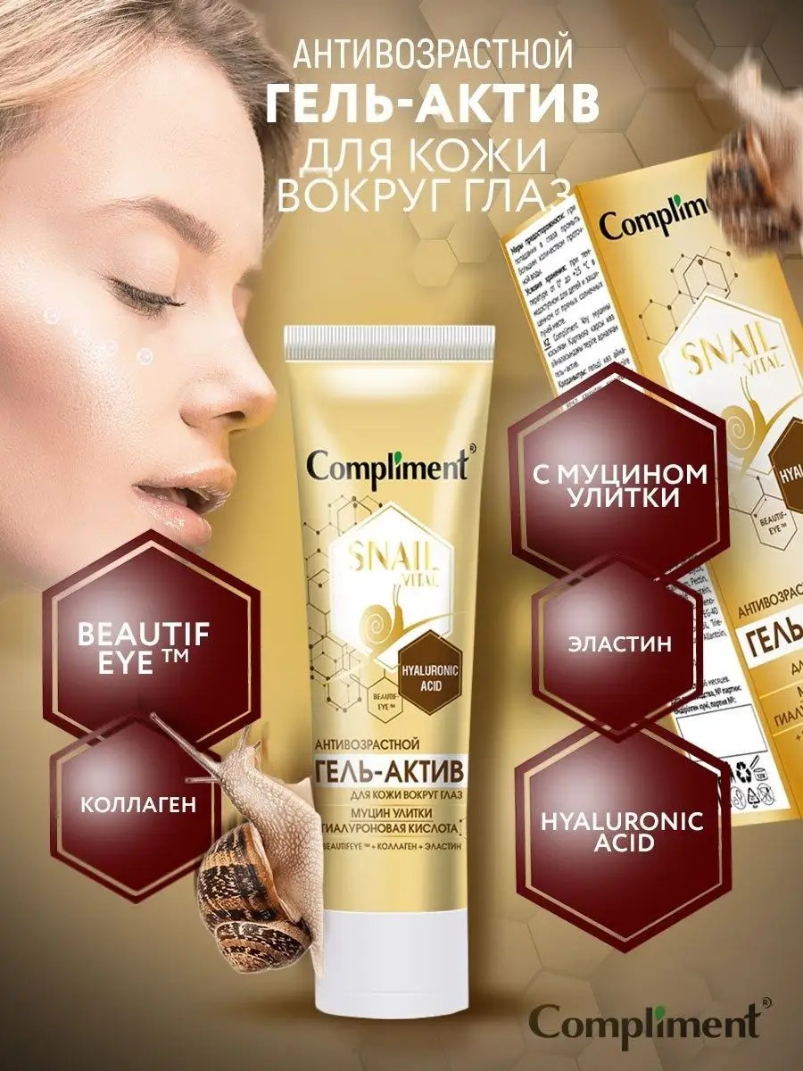 Антивозрастной гель актив для кожи вокруг глаз объемом 25 мл Compliment — это идеальное решение для тех, кто хочет избавиться от отечности, темных кругов и морщин, придавая своему лицу ухоженный и здоровый вид.