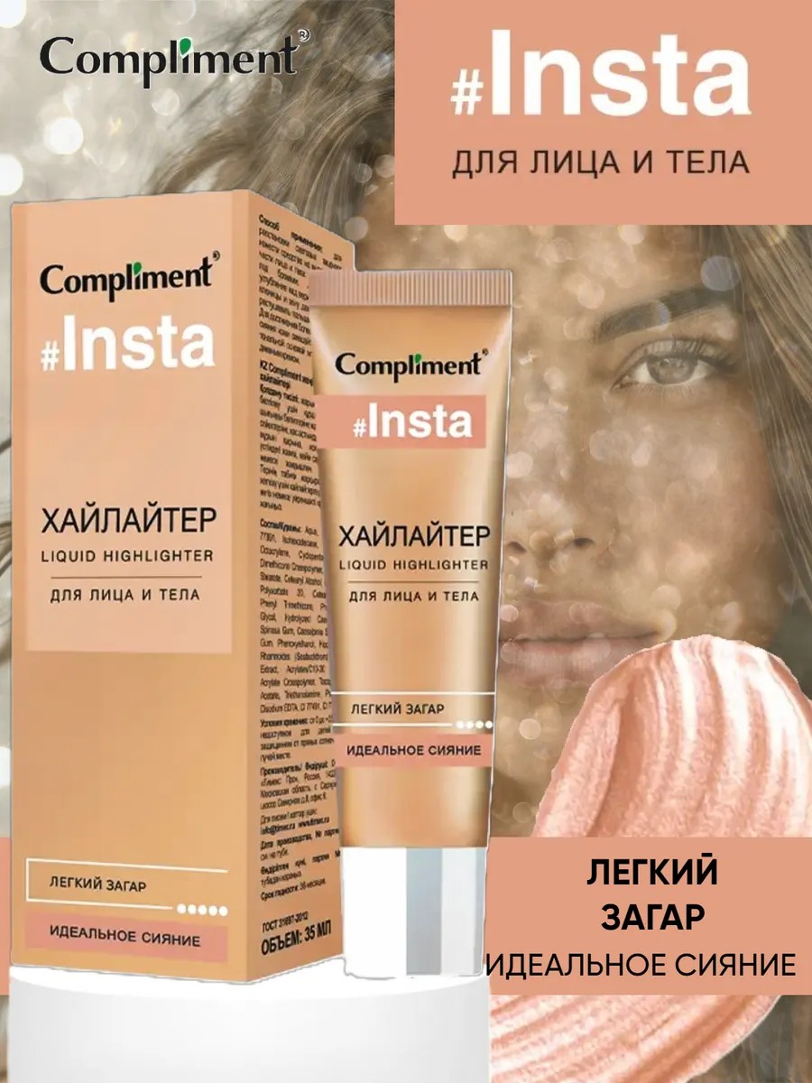 Хайлайтер для лица и тела в оттенке Легкий загар Compliment – это универсальное средство для создания естественного сияющего макияжа, которое поможет подчеркнуть ваши природные черты и придать коже свежий, отдохнувший вид.
