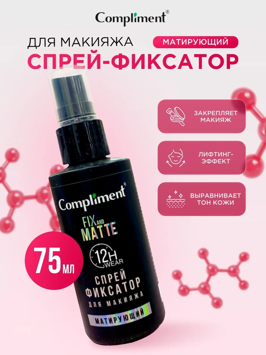 Комплимент Спрей фиксатор для макияжа — это инновационное средство, созданное для тех, кто ценит безупречный макияж в течение всего дня. Спрей для фиксации макияжа матирующий представлен в удобном формате спрея объемом 75 мл, что делает его идеальным спутником как для ежедневного использования, так и для особых случаев.