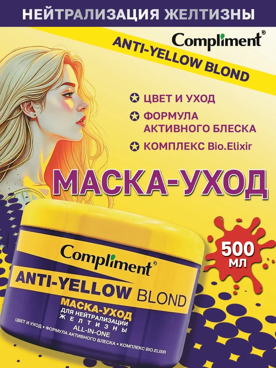 Маска нейтрализатор желтизны для волос объемом 500 мл от Compliment. Укрепляющая питательная маска-уход станет вашим верным помощником в борьбе с нежелательными оттенками.
