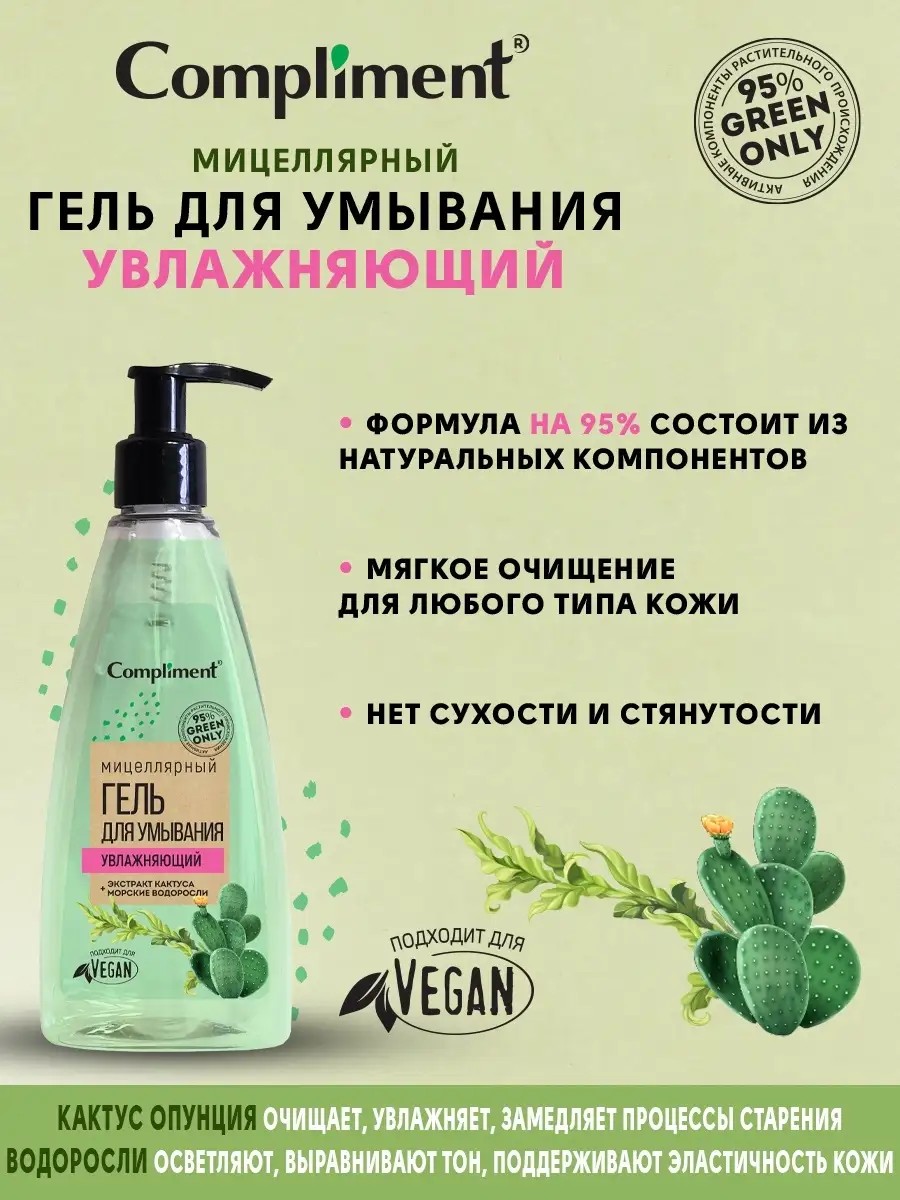 Гель для умывания благодаря мицеллярной формуле быстро удаляет загрязнения и макияж. Деликатная формула средства, на 95% состоящая из ингредиентов натурального происхождения, не разрушает липидный барьер и не вызывает чувства стянутости после применения. Заменит основные этапы ухода за кожей: эффективно очистит, протонизирует и увлажнит. Кактус "опунция" обладает редкими очищающими, успокаивающими и регенерирующими свойствами. В больших количествах содержит ретинол и витамин B, замедляющие старение кожи. Морские водоросли обладают глубоко увлажняющим действием, способствуют поддержанию эластичности, осветляют и выравнивают тон кожи.