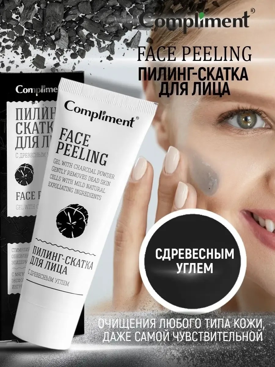 Пилинг для лица Compliment идеально подходит для всех типов кожи. Благодаря своей уникальной формуле, он мягко воздействует на кожу, не вызывая раздражений. Этот пилинг для кожи лица поможет вам избавиться от черных точек и других недостатков, обеспечивая при этом глубокое очищение пор. Ваша кожа будет дышать, а вы почувствуете себя более уверенно.