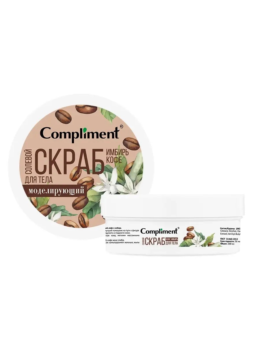 Compliment Солевой скраб для тела Моделирующий, кофе и имбирь