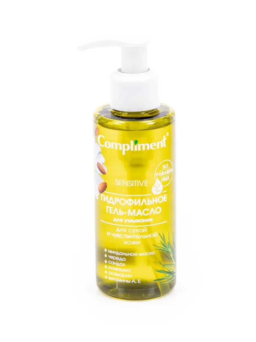 Compliment / Комплимент Гель-масло для умывания лица гидрофильное для сухой и чувствительной кожи с миндальным маслом, чередой, розмарином, ромашкой, санадлом 150мл / косметика.