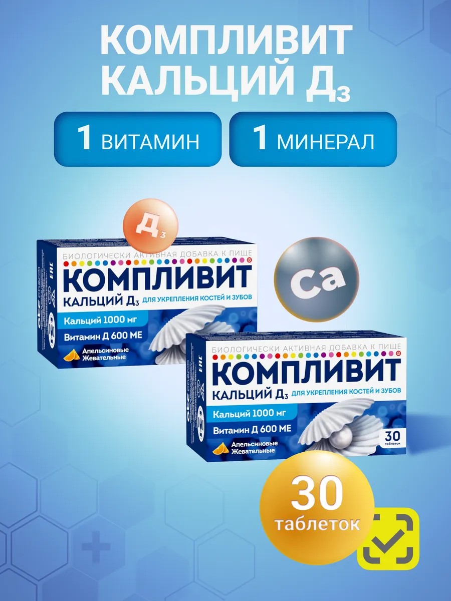 Компливит Кальций Д3 апельсин для костей и зубов 30 таблеток 2 уп