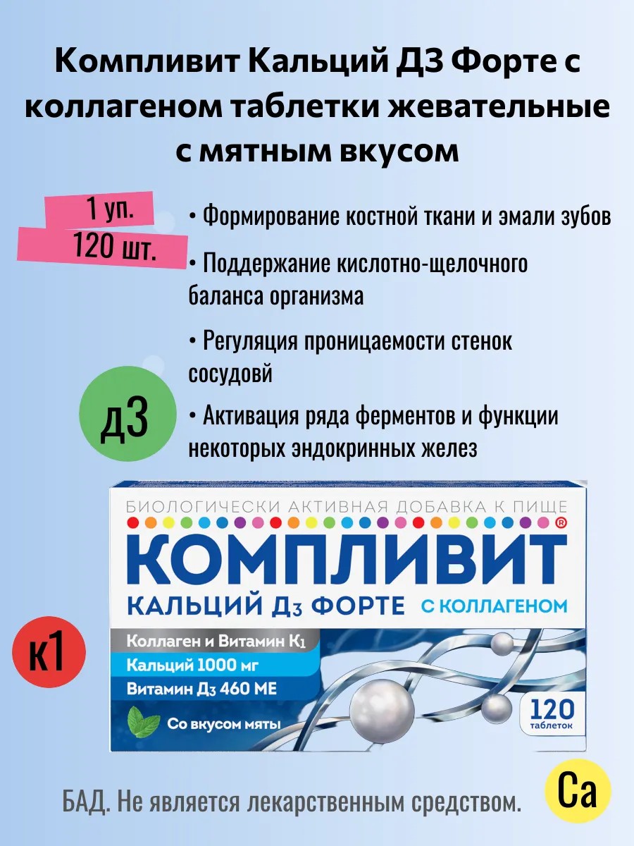 | Состав | кальция карбонат; коллаген; витамины Д и К |