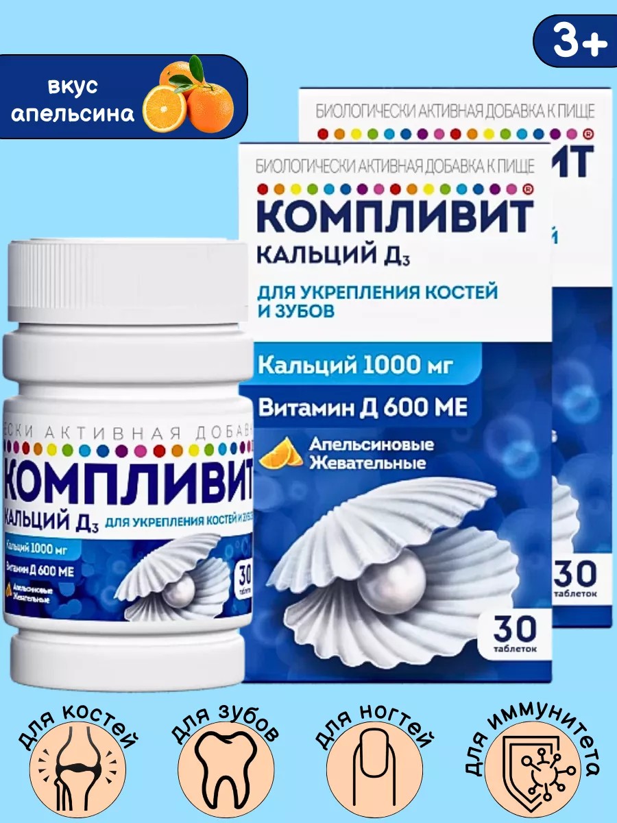 | Комплектация | компливит кальций д3 n30 табл жевать по 1750мг/апельсин/банка*2шт |