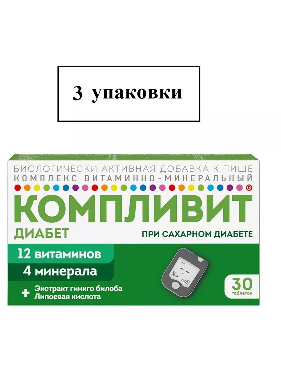 Компливит Диабет удовлетворяет повышенную потребность организма в витаминах, минералах и биологически активных веществах, возникающую при нарушениях углеводного обмена и в результате ограничения рациона питания. Компливит Диабет - это специализированный витаминно-минеральный комплекс для людей с сахарным диабетом. Экстракт гинкго билоба улучшает мозговое кровообращение. Людям с сахарным диабетом рекомендуется принимать витаминно-минеральные комплексы регулярно: курсами в течение года, в соответствии с рекомендациями специалиста. Компливит Диабет содержит не только витамины и минералы, но и: экстракт гинкго билоба, улучшающий мозговое кровообращение, липоевую кислоту, участвующую в регуляции углеводного обмена, а также хром, рутин и биотин.