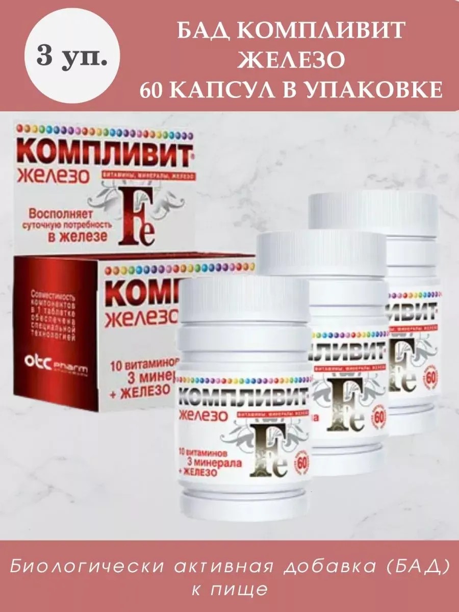Complivit Iron 60 tablets per package. Dietary supplement. Complivit Iron's action is determined by the properties of its constituent components. Iron is a source of vitamins and minerals. A distinctive feature is its content of the daily physiological dose of iron (in the form of ferrous fumarate), which is a vital element for the body. It is a component of hemoglobin and participates in tissue respiration. Iron is necessary for bone formation, the nervous system, the gastrointestinal tract, endocrine glands, and the normal functioning of the immune system, and deficiency can lead to anemia. This vitamin complex also contains a complex of other essential minerals and vitamins. Recommended for women of reproductive age.