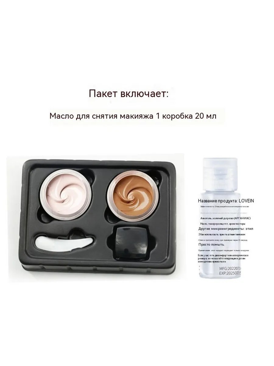 Комбинированный костюм-двухцветный маскирующий крем для снятия макияжа 20ml Этот двухцветный маскирующий крем для татуировки с любовью предназначен для покрытия дефектов кожи. Он обладает водонепроницаемыми и антипотовыми свойствами, может эффективно покрывать родимые пятна и шрамы и сохранять макияж в течение длительного времени. Текстура тональной основы и превосходный эффект маскировки делают кожу более безупречной.