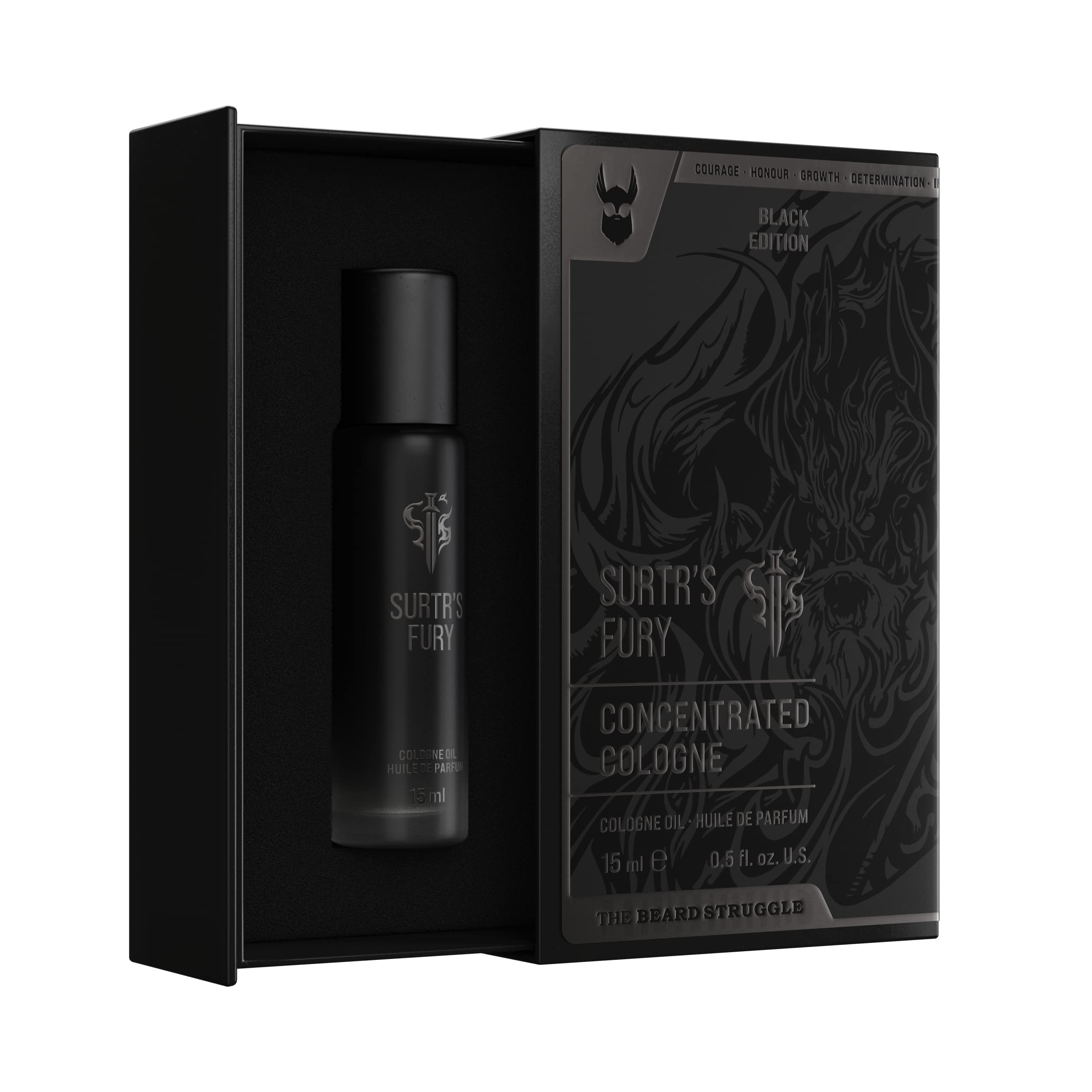Concentrated Cologne for Men by Beard Struggle - 6x More Longer Than Traditional Colognes - Platinum Collection - Surtr's Fury - Mens Cologne 15 mL / 0.5 US. fl. oz. Glass Roller Bottle