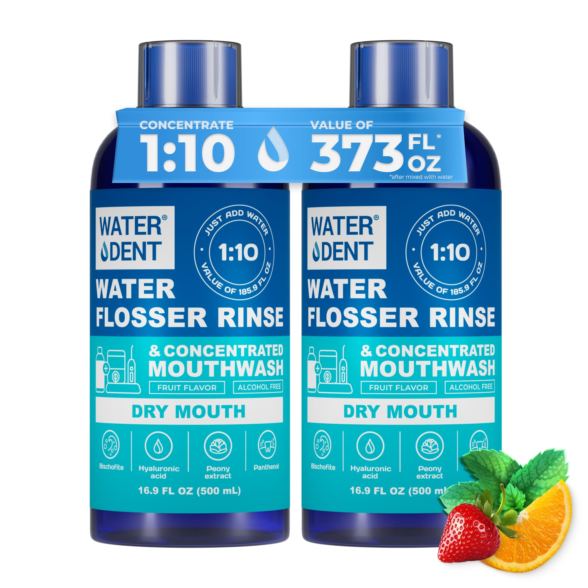 Concentrated Irrigant Dry Mouth | Add to Water Flossers | Mild Mint & Fruit Flavor |1:10 186 fl.oz | Alcohol Free Fluoride Free. Made in USA (PACK OF 2) 16.9 Fl Oz (Pack of 2)