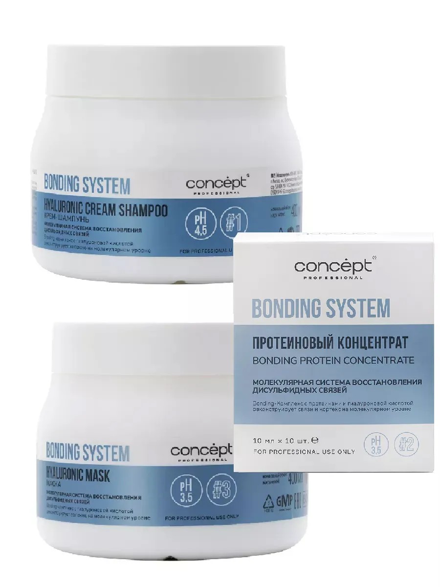| Package contents | Bonding System deep hair restoration mask, 400 ml - 1 pc.; Bonding System cream shampoo for hair, 400 ml - 1 pc.; Bonding System Protein Hair Concentrate, 10*10 ml - 1 pack. |