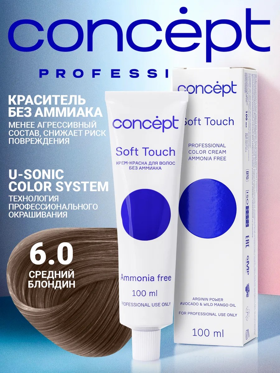 concept Краска для волос Soft Touch 6.0 Средний блондин, 100 мл
