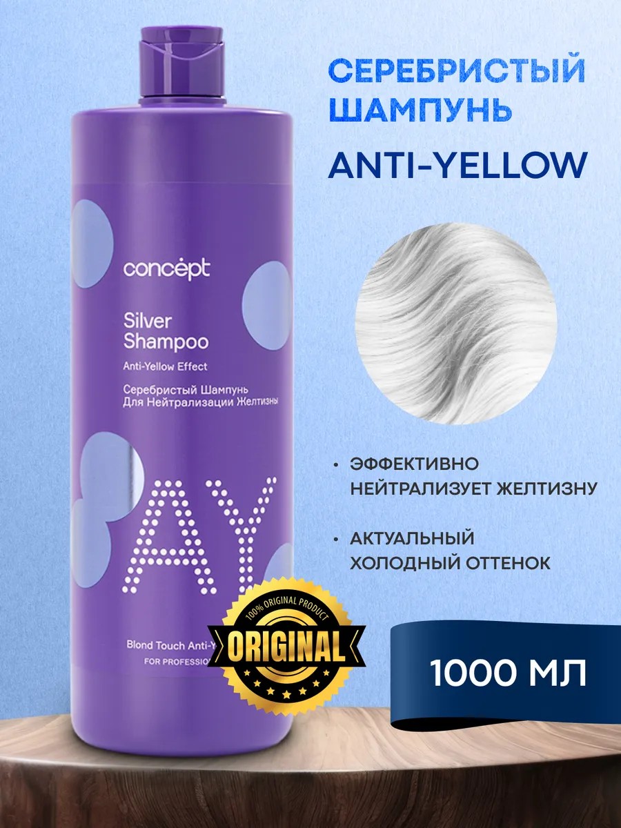 | Комплектация | Шампунь для волос оттеночный антижелтый ANTY-YELLOW Серебристый 1000 мл Concept-1шт. |