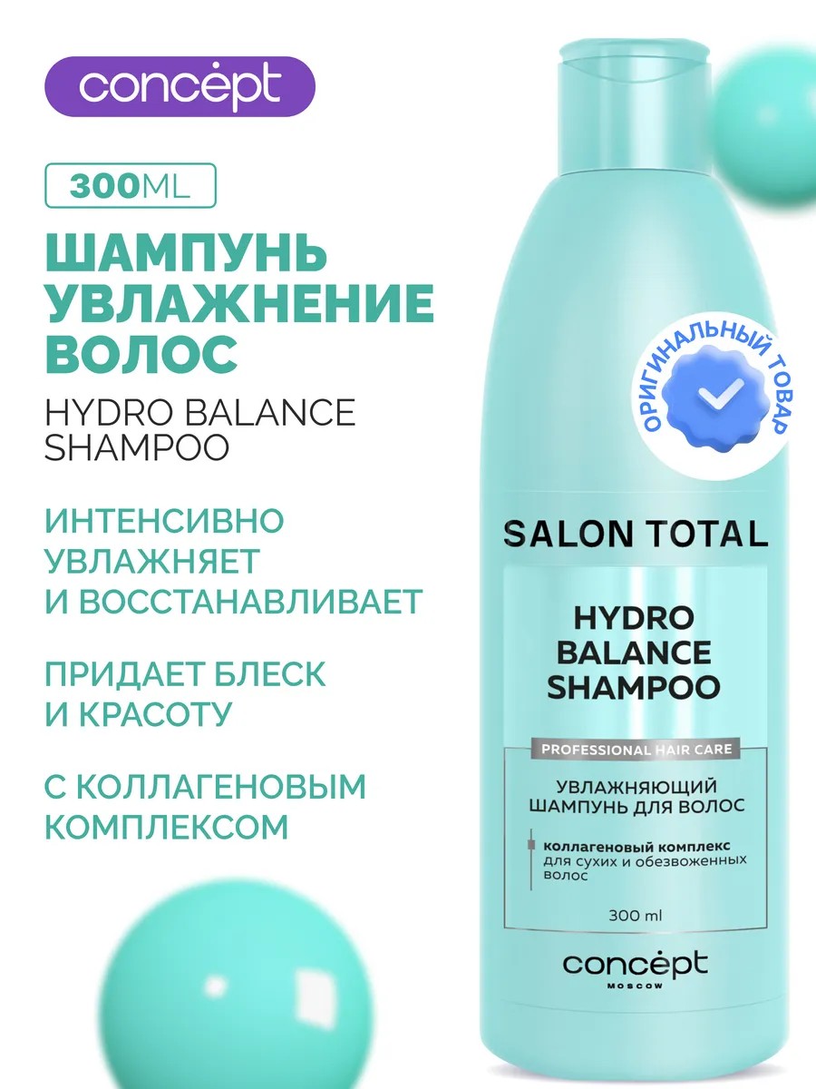 Профессиональный шампунь Concept SALON TOTAL HYDRO BALANCE увлажняющий предназначен для ухода за обезвоженными, жесткими и непослушными волосами, обеспечивая питательный эффект. Это средство бережно подготавливает кожу головы и волосы к следующему этапу кондиционирования, выравнивая сухую и пористую кутикулу.