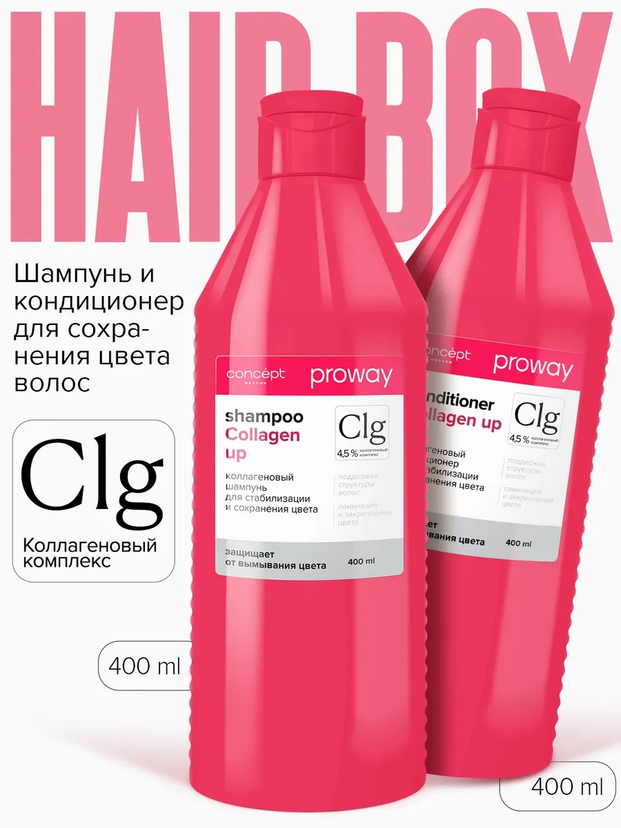 Этот набор с коллагеновым комплексом Proway - именно то, что нужно вашим волосам для сохранения яркости и насыщенности цвета. Шампунь обеспечивает стабилизацию и сохранение цвета волос, при этом оптимально укрепляя и уплотняя их. При регулярном использовании шампуня вы заметите, что кутикула ваших волос становится более защищенной. Это позволяет предотвратить вымывание красящих пигментов из волос, сохраняя таким образом первоначальный насыщенный оттенок. Шампунь подходит для всех типов волос: окрашенных, осветленных, тонких и поврежденных. Он не только эффективно очищает ваши волосы, но и оказывает ряд других полезных действий. С его помощью вы достигнете блеска, эластичности, а также укрепления и уплотнения каждой пряди. Будучи эффективным средством по уходу за волосами, данный продукт подарит вашим локонам насыщенный однородный цвет без перхоти или жирности. Радуйтесь яркому оттенку своих волос всегда! Специальные компоненты в составеколлагеновогокондиционера обеспечивают глубокое питание и увлажнение, делая волосы более послушными и шелковистыми. Этот продукт помогает поддерживать стабильный и яркий цвет ваших волос, предотвращая его выцветание. Сбалансированный состав обогащен коллагеном, хитозаном, а также экстрактами лайма и помело. Вместе они создают уникальное сочетание, которое придает вашим локонам здоровый вид и естественное сияние. Коллаген способствует повышению прочности волос, делая их менее ломкими и более эластичными. Кроме того, этот кондиционер способствует сохранению насыщенности цвета вашей прически. Благодаря специальной формуле продукта, ваш цвет не только останется ярким долгое время, но также будет выглядеть свежим и стойким. Ваша прическа будет словно окутана эффектом ламинирования, придавая ей блеск и жизненность.