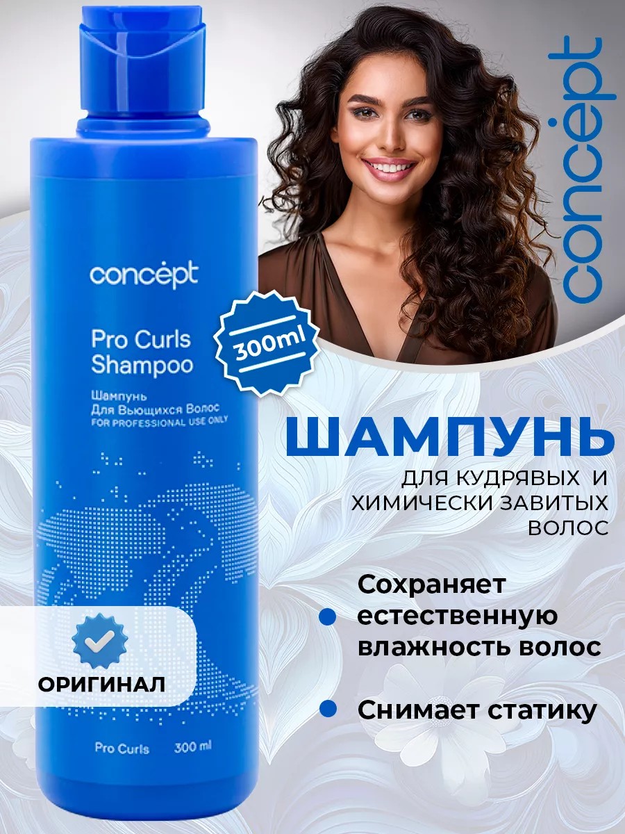 Женский Шампунь для вьющихся волос Pro Curls Shampoo от Concept. Концепт это профессиональный комплексный уход за пушистыми вьющимися волосами. Серия Beauty Curls подарит локонам здоровый блеск и ухоженный вид, облегчит укладку и снимет статику, обеспечивает глубокую очистку. Нежнейшая консистенция натурального парфюмированного шампуня мягко промывает длину и кожу головы сохраняет естественную влажность . Это особенно важно для вьющихся кудрявых непослушных , которые склонны к сухости и хрупкости. Состав обогащен уникальным комплексом активных ингредиентов, заметно улучшающих состояние локонов и чувствительной кожи головы. Натуральный Кератин хитозан экстракт шелка восстанавливают структуру кутикулы и буквально обволакивают защитной гидролипидной пленкой. Масло дикого манго, содержащее полисахариды, витамины, ферменты и антиоксиданты, обеспечивает дополнительное питание и увлажнение, создавая красиво очерченные, шелковистые локоны. Максимально эффективно действует в комплексе с бальзамом для кудрявых Pro Curls Balm. Как используют Pro Curls Shampoo? Небольшое количество нанесите на влажные , вспеньте и хорошо помассируйте. Тщательно промойте водой. Воспользуйтесь бальзамом для вьющихся Beauty Curls. Максимальный эффект достигается при комплексном использовании с кондиционером серии Beauty Curls. Придает прическе здоровый, ухоженный вид, создает шелковистые локоны. Подходит для ухода за кудрявыми и химически завитыми волосами. Подходит для всех типов волос, в том числе жирных, окрашенных, осветленных, мелированных, кудрявых, вьющихся, пористых , сухих, седых. Средство убирает лишнюю пушистость, обеспечивает легкое расчесывание, борется против перхоти и секущихся кончиков, добавляет объема и густоты. Подходит для мужчин и всей семьи. Подходит для профессионального использования парикмахерами в салоне и домашнего использования