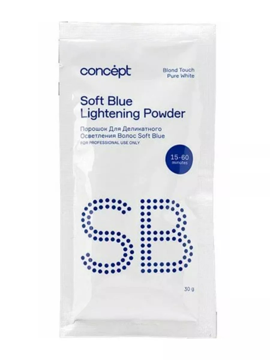 одходит для:декапирования, любых техник классического и креативного мелирования. Преимущества. Обладает высокой осветляющей способностью: до шести уровней тона. Не пылит, имеет приятный свежий аромат. Предотвращает появление нежелательного желтого оттенка. Действует деликатно, не повреждает волосы. С ЗАБОТОЙ О ВОЛОСАХ. Уникальная формула порошка содержит натуральные компоненты: Гуар восстанавливает структуру волосяного стержня, смягчает волосы, препятствует накоплению статического электричества. Полисахариды способствуют удержанию влаги в волосах. Минералы кремния укрепляют волосы, делают их блестящими и эластичными. Порошок Concept SOFT BLUE LIGHTENING POWDER – это бережный уход и красивый цвет ваших волос.