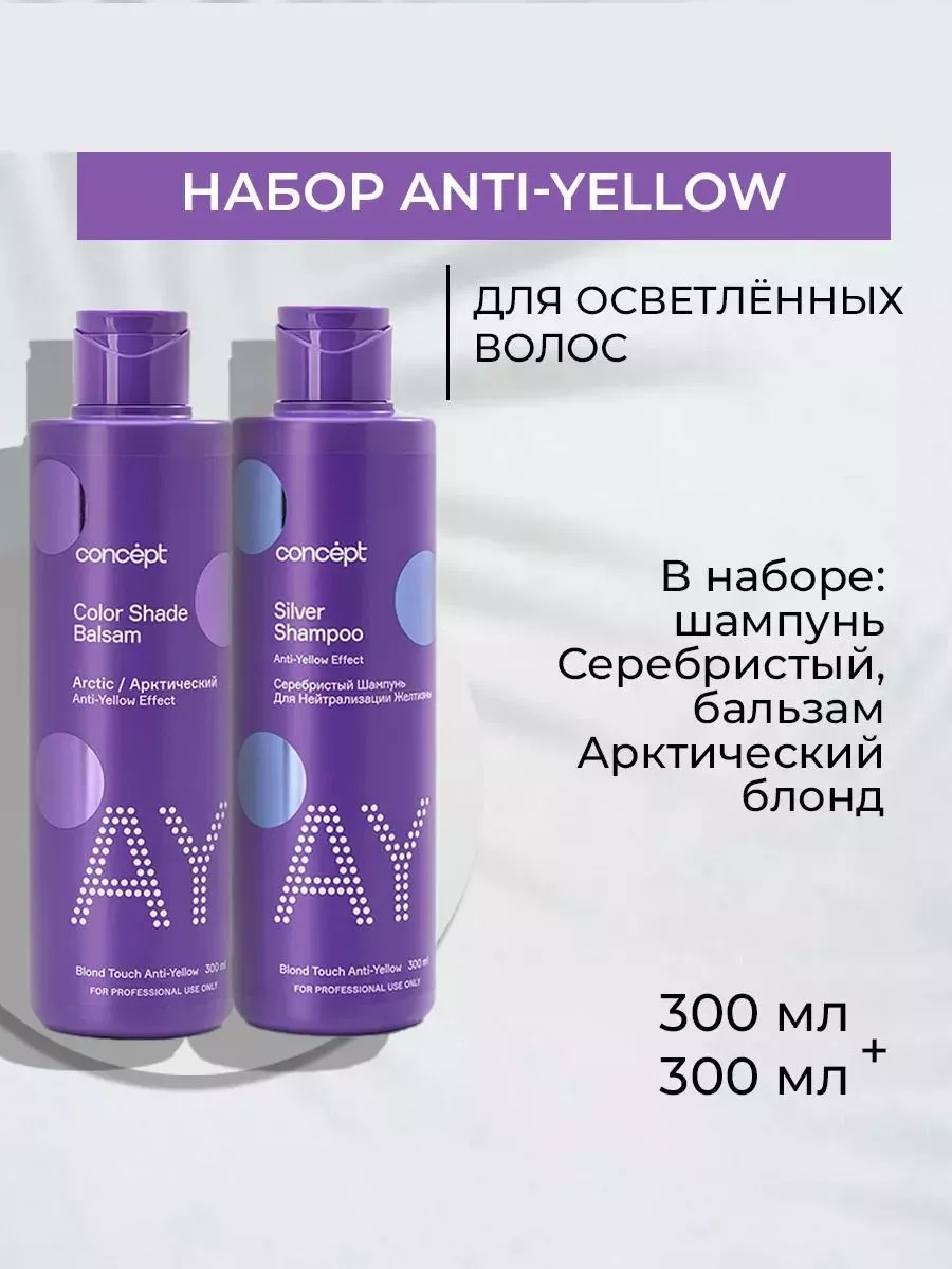 Профессиональный антижелтый набор Концепт Anti Yellow станет отличным подарком на любой праздник, идеально подходит для блонда, мелированных и седых волос.