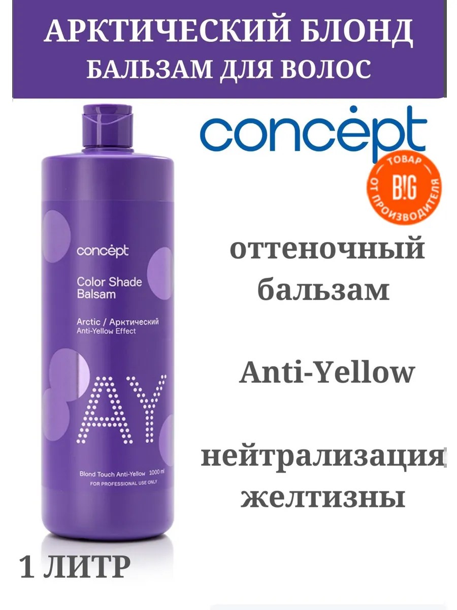 Большой флакон для салона и для домашнего примениея. Нанесите бальзам бренда Concept на влажные очищенные волосы. Равномерно распределите его по длине и коже головы. Через 5 минут промойте волосы теплой водой. Для более интенсивного тонирования можно оставить на волосах на 10-15 минут. Нейтрализует нежелательные теплые оттенки обесцвеченных и окрашенных в светлые тона волос.