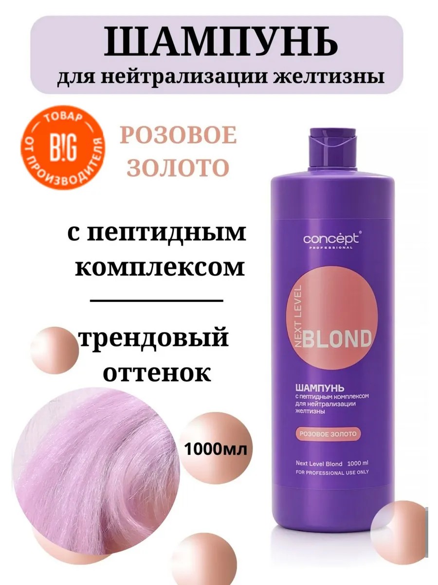 ШАМПУНЬ С ПЕПТИДНЫМ КОМПЛЕКСОМ ДЛЯ НЕЙТРАЛИЗАЦИИ ЖЕЛТИЗНЫ "розовое золото"