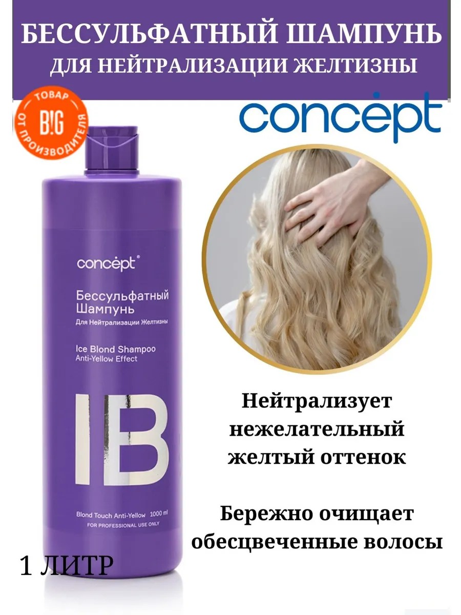 new generation product in the Concept Anti-Yellow line is the sulfate-free Ice Blond women's shampoo. This multifunctional product is designed to neutralize unwanted yellow tones while gently caring for bleached hair. Ice Blond shampoo neutralizes yellow tones after coloring blondes. Formulated with mild surfactants, Ice Blond shampoo makes washing damaged hair comfortable. Hair is easy to rinse, tangle-free, and breakage-free.