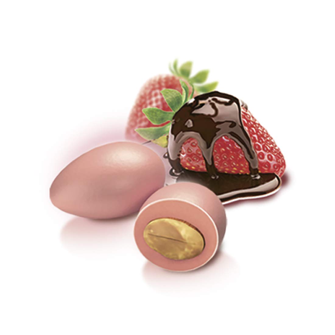 A touch of sweetness and color for your jam: Strawberry-flavored Papa dragees, made with only real fruit and natural flavors, also suitable for those with celiac disease. Roasted almond covered in white chocolate and strawberry. Kosher certified – Gluten-free certified – Dragees made with real fruit and only natural flavors. 500g pack 95 dragees light pink