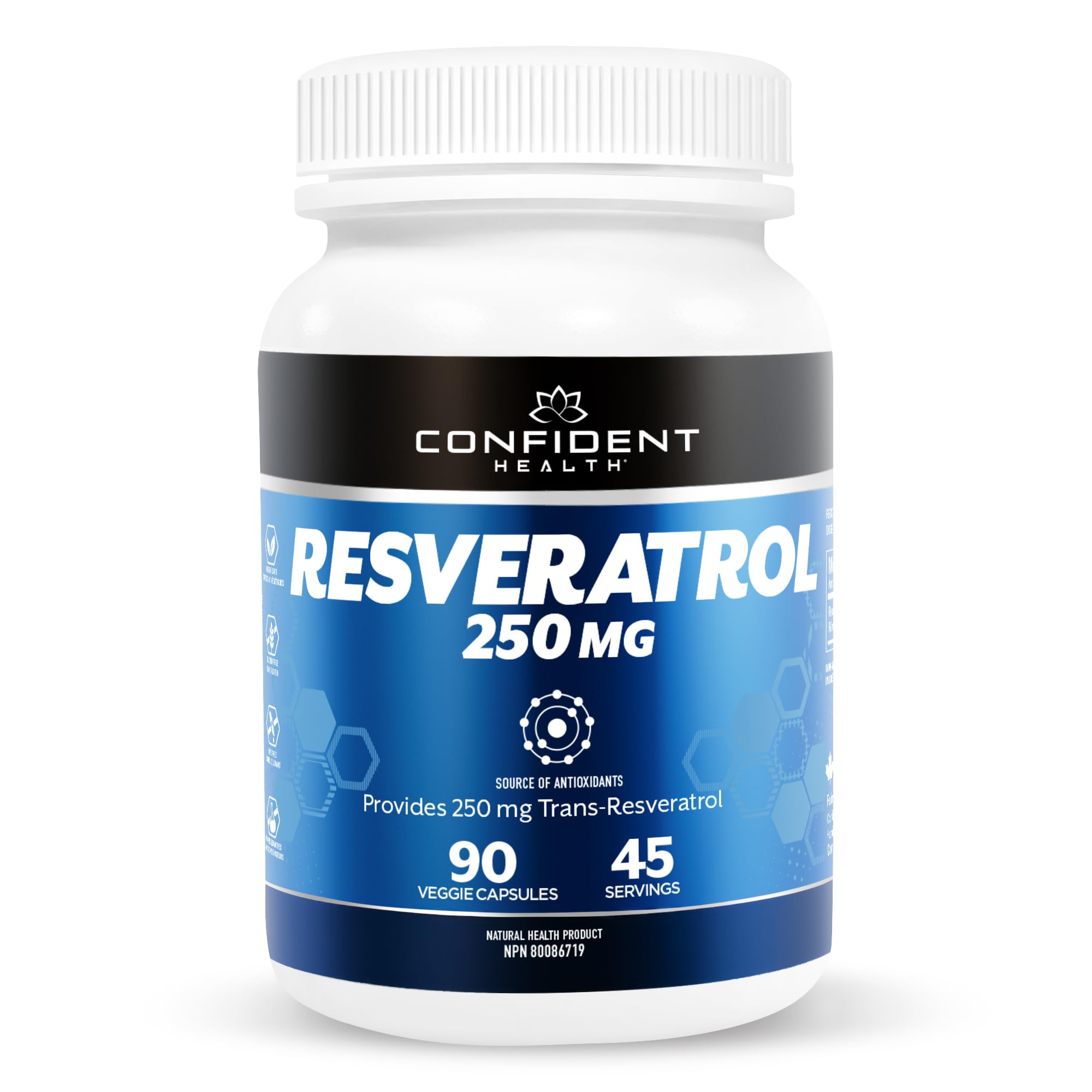 CONFIDENT HEALTH - Trans Resveratrol 250mg - High Potency Antioxidant Supplement - Supports Healthy Aging & Heart Health 90 Veggie Capsules 45 Servings