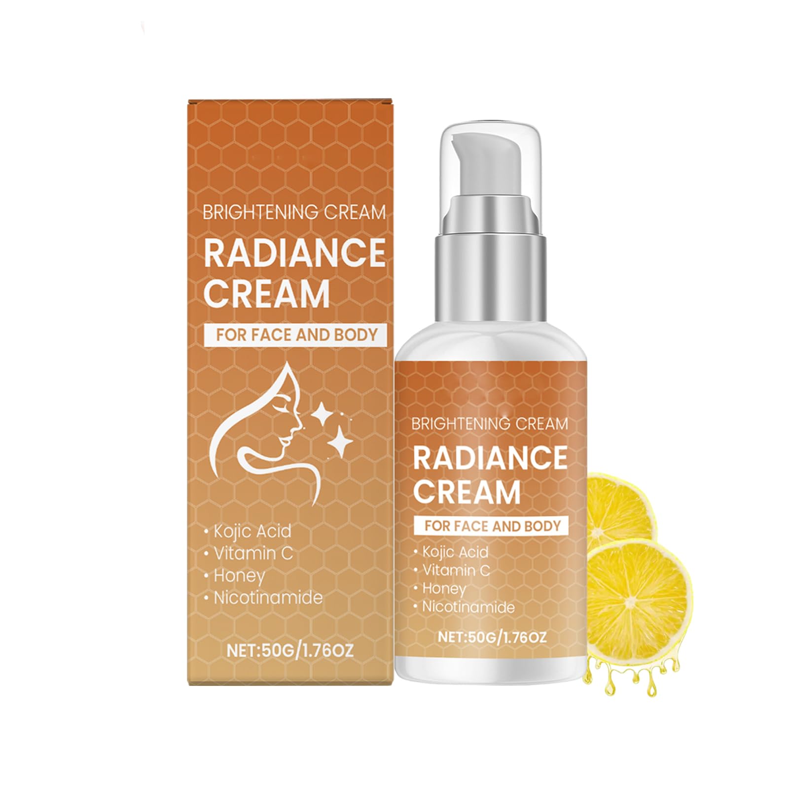Glows Revival Face Cream – Moisturizing cream with vitamin C and hyaluronic acid for brightening, hydrating, and smoothing dull skin SAFE USE INSTRUCTIONS: 1. After bathing, take an appropriate amount of cream and apply it evenly to the face or other parts of the body. 2. Apply lightly to dark areas. 3. Use sunscreen during the day for added protection. 4. Avoid the skin around the eyes and broken skin. Specifications Name: Brightening Face Cream Net Weight: 50 g Shelf Life: 3 years Package Contents: 1 2 3 6 pieces Face Lightening Cream Note: 1. Please allow 1-5g 1-2cm error due to manual measurement. 2. The actual color of the item may vary slightly from the image due to differences in monitor settings and lighting. Thank you for your understanding. SAFETY WARNING Store in a cool, dry place away from sunlight. Keep out of reach of children.Gentle and versatile: Fragrance-free and non-irritating, suitable for all skin types – use as a day cream, night mask, or makeup base for a more radiant complexion. 24-hour moisturizing cream: Sodium hyaluronate deeply hydrates to plump fine lines and maintain supple skin for lasting comfort, day and night. Pore refinement and balancing: Niacinamide helps minimize pores and regulate excess oil for a refined, shine-free complexion. Revitalizes dull skin: Lightweight formula that absorbs and hydrates quickly, leaving skin soft and smooth without an oily residue – ideal for daily use. Brightening and moisturizing cream: Enriched with vitamin C and niacinamide, this face cream helps even skin tone and reduce dark spots for a healthy, radiant glow.Crème éclaircissante pour le visage à la vitamine C et à la niacinamide, lotion hydratante pour le visage, réduit visiblement les taches brunes et un teint inégal, hydratant raffermissant (1PCS)DESCRIPTION DU PRODUIT DESCRIPTION DU PRODUIT Glows Revival Crème pour le visage – Crème hydratante à la vitamine C et à l'acide hyaluronique pour une peau terne éclaircissante, hydratante et lissante CONSEILS D'UTILISATION SÉCURISÉS : 1. Après le bain, prenez une quantité appropriée de crème et appliquez-la uniformément sur le visage ou d'autres parties du corps. 2. Appliquez légèrement sur les zones sombres. 3. Utilisez un écran solaire pendant la journée pour une protection supplémentaire. 4. Évitez la peau autour des yeux et la peau endommagée. Spécificités Nom : crème éclaircissante pour le visage Poids net : 50 g. Durée de conservation : 3 ans. Contenu de l'emballage : 1 2 3 6 pièces Crème éclaircissante pour le visage Remarque : 1. Les mesures étant prises à la main, les tailles indiquées peuvent varier de 1 à 5 g 1 à 2 cm. 2. La couleur de l'article peut varier de celle de la photo, en fonction des paramètres d'affichage et de luminosité de votre ordinateur. S'il vous plaît comprendre, merci! AVERTISSEMENT DE SÉCURITÉ Conserver dans un endroit frais et sec, à l'abri du soleil. Tenir hors de portée des enfants.Doux et polyvalent : sans parfum et non irritant, convient à tous les types de peau - Utilisable comme crème de jour, masque de nuit ou base de maquillage pour une peau plus éclatante. Crème hydratante 24h : l'hyaluronate de sodium hydrate en profondeur pour repulper les ridules et maintenir une peau souple, pour un confort durable, de jour comme de nuit. Raffinage et équilibrage des pores : la niacinamide aide à minimiser les pores et à réguler l'excès de sébum pour un teint raffiné et sans brillance. Revitalise la peau terne: Formule légère qui pénètre et hydrate rapidement, laissant la peau douce et lisse sans laisser de film gras - Idéal pour un usage quotidien. Crème éclaircissante et hydratante : enrichie en vitamine C et en niacinamide, cette crème pour le visage aide à uniformiser le teint et à réduire les taches brunes pour un éclat éclatant et sain.