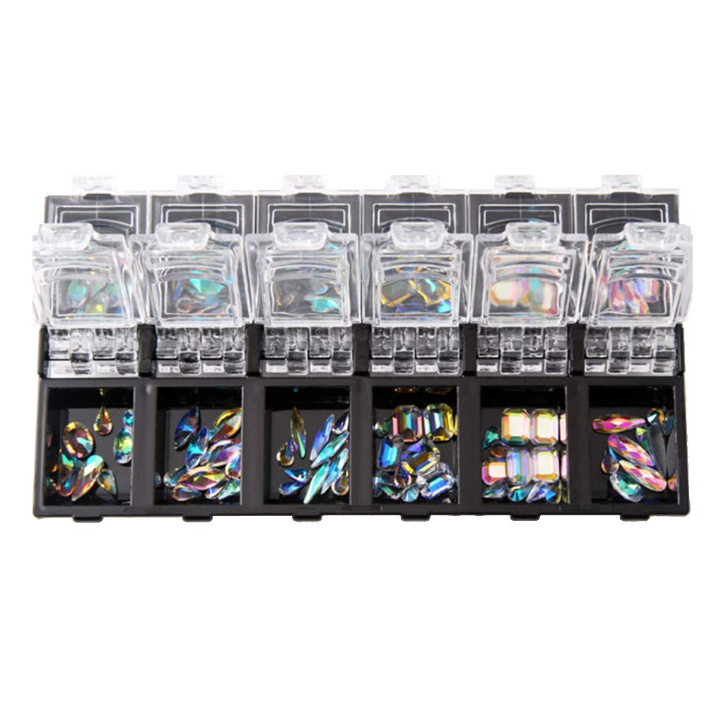 Conijiwadi Nail Art Rhinestone Palette 12 Grids Colorful Water Drop Shape Square Flat Bottom Rhinestones