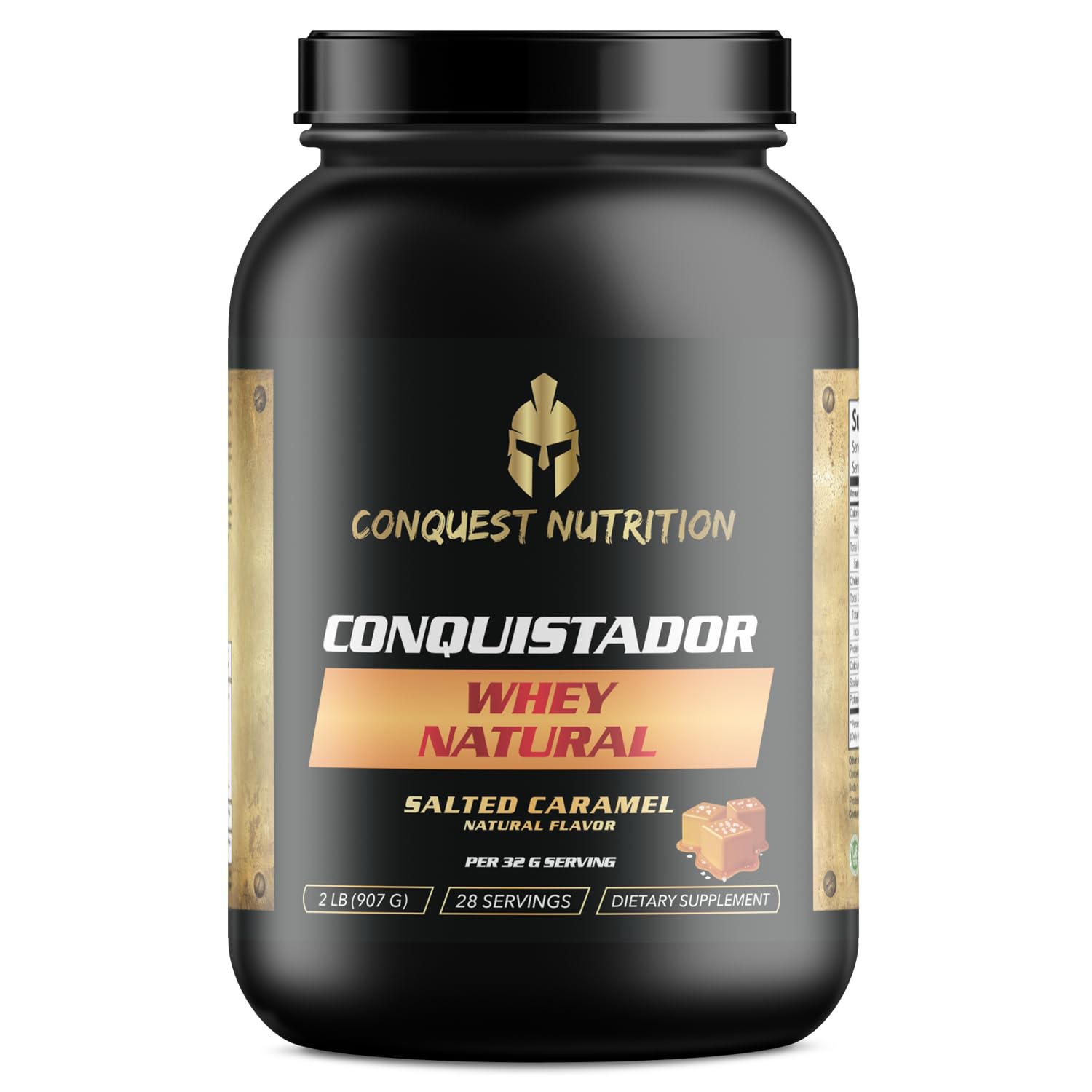 CONQUEST NUTRITION QUALITY: Manufactured by Conquest Nutrition, this protein powder upholds the brand's commitment to excellence in sports nutrition supplements. DELICIOUS FLAVOR: The Salted Caramel flavor provides a perfect balance of sweet and salty notes, making your protein shake a treat to look forward to. NATURAL FORMULATION: Made with natural ingredients, this protein powder avoids artificial additives while delivering exceptional taste and nutritional benefits. CONVENIENT SIZE: This 2lb container offers the perfect balance between value and convenience, providing multiple servings of high-quality whey protein. HIGH-QUALITY PROTEIN: Conquistador Whey Natural Protein delivers premium protein to support muscle recovery and growth in a delicious Salted Caramel flavor.