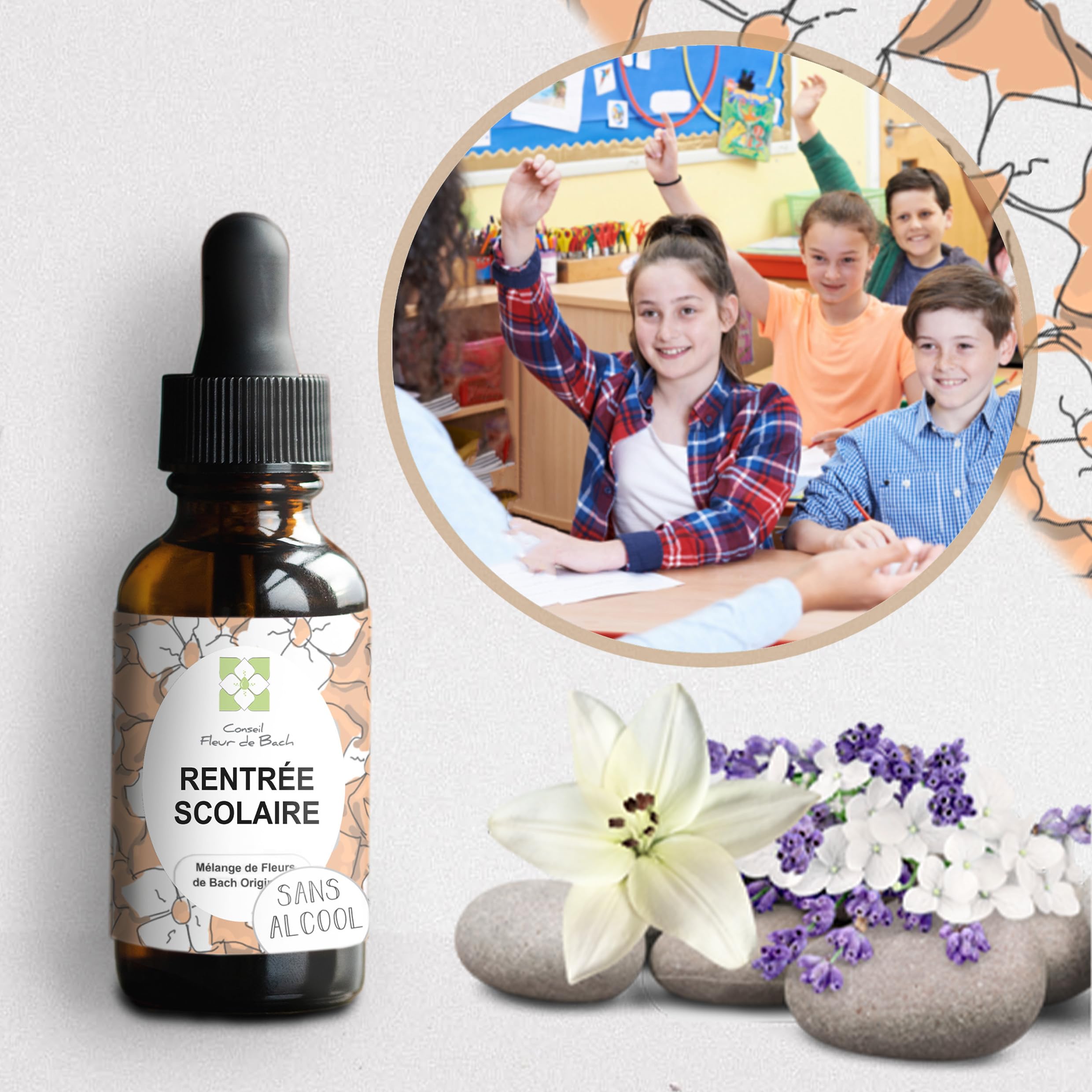 Bach Flower Remedies Back to School ALCOHOL-FREE Back to school is just around the corner, and your children are worried! Just like adults, children can experience stress as the start of the school year approaches. This anxiety is sometimes accompanied by numerous changes (moving, new teachers, or a new school schedule.). This feeling, which can feel like a real nightmare for some, shouldn't be underestimated. As the start of the school year approaches, children can experience stress. This feeling, which can feel like a real nightmare for some, shouldn't be underestimated. The start of the school year is a daunting situation for your child. - Fear of change - Feelings of abandonment - Difficulty separating from parents - The novelty creates stress and a lack of self-confidence. All these feelings are frequently experienced during this time, especially if your child is shy, reserved, and lacks self-confidence. This Bach Flower Remedy blend will help your child: - to separate from you without suffering (for young children, for example) - to adapt to this new phase of life without feeling homesick - to feel more secure and less afraid of this new situation - to approach this moment more calmly and make the walk to school a pleasure again. And for you, mom or dad, if this is difficult, consider Bach Flower Remedies and ask for a blend that suits you to better navigate this stage and make it easier for your child. This blend is not a substitute for medical treatment. Allow approximately two months for use and assess the changes observed. Composition: Spring water, Bach Flower Remedy blendAlcohol-Free Blend. Boosts the self-confidence of anxious children. A smooth return to school. 30ml bottle with integrated dropper for precise dosing. TAKE ADVANTAGE OF OUR OFFER: BUY ONE 30ML BOTTLE, GET ONE FREE. Get 2 bottles for the price of 1, or €14.95 PER BOTTLE.Fleurs de bach Rentrée scolaire sereine"SANS ALCOOL" - Aidez vos enfants à vivre une rentrée scolaire agréable sans stress et angoisse .30MLDESCRIPTION DU PRODUIT Fleurs de Bach Rentrée scolaire SANS ALCOOL Bientôt la rentrée et vos enfants sont inquiets ! Tout comme les adultes, à l'approche de la rentrée, les enfants peuvent se retrouver dans un état de stress. Cette inquiétude est parfois assortie de nombreux changements (déménagement, nouveaux enseignants ou nouveau rythme scolaire .) Il ne faut pas minimiser ce sentiment qui peut ressembler à un véritable cauchemar pour certains. A l'approche de la rentrée, les enfants peuvent se retrouver dans un état de stress. Il ne faut pas minimiser se sentiment qui peut ressembler à un véritable cauchemar pour certains. La rentrée scolaire est une situation impressionnante pour votre enfant. - la peur du changement - le sentiment d'abandon - la séparation avec les parents est difficile - la nouveauté engendre une source de stress, un manque de confiance en soi . Tous ces sentiments sont fréquemment vécus lors de cette étape. Surtout si votre enfant est timide, réservé et manque de confiance en lui. Ce mélange de Fleurs de Bach va permettre à votre enfant - de pouvoir se séparer de vous sans souffrir ( pour les petits par exemple) - de s'adapter à cette nouvelle phase de vie sans ressentir la nostalgie de la maison - de se sentir plus en sécurité et de ne plus avoir de crainte face à cette nouvelle situation - de l'aider à aborder ce moment de manière plus sereine et faire en sorte que le chemin de l'école devienne ou redevienne un plaisir. Et pour vous maman, ou papa, si cela est difficile, pensez aussi aux Fleurs de Bach et demandez un mélange qui vous correspond pour mieux vivre cette étape et la faciliter à votre enfant. Ce mélange ne remplace pas un traitement médical Prévoyez une période de 2 mois environ et faites le point sur les changements obtenus. Composition : Eau de source , Mélange de FleMélange Sans Alcool. Renforce la confiance en soi de l'enfant qui se fait du souci. Un retour serein sur les bancs de l'ecole. Flacon de 30 ML avec pipette intégrée pour un juste dosage. PROFITEZ DE L OFFRE UN FLACON DE 30 ML ACHETE LE MEME FLACON DE 30 ML OFFERT. Beneficier de 2 flacons pour le prix d'un seul SOIT 14.95€ LE FLACON.