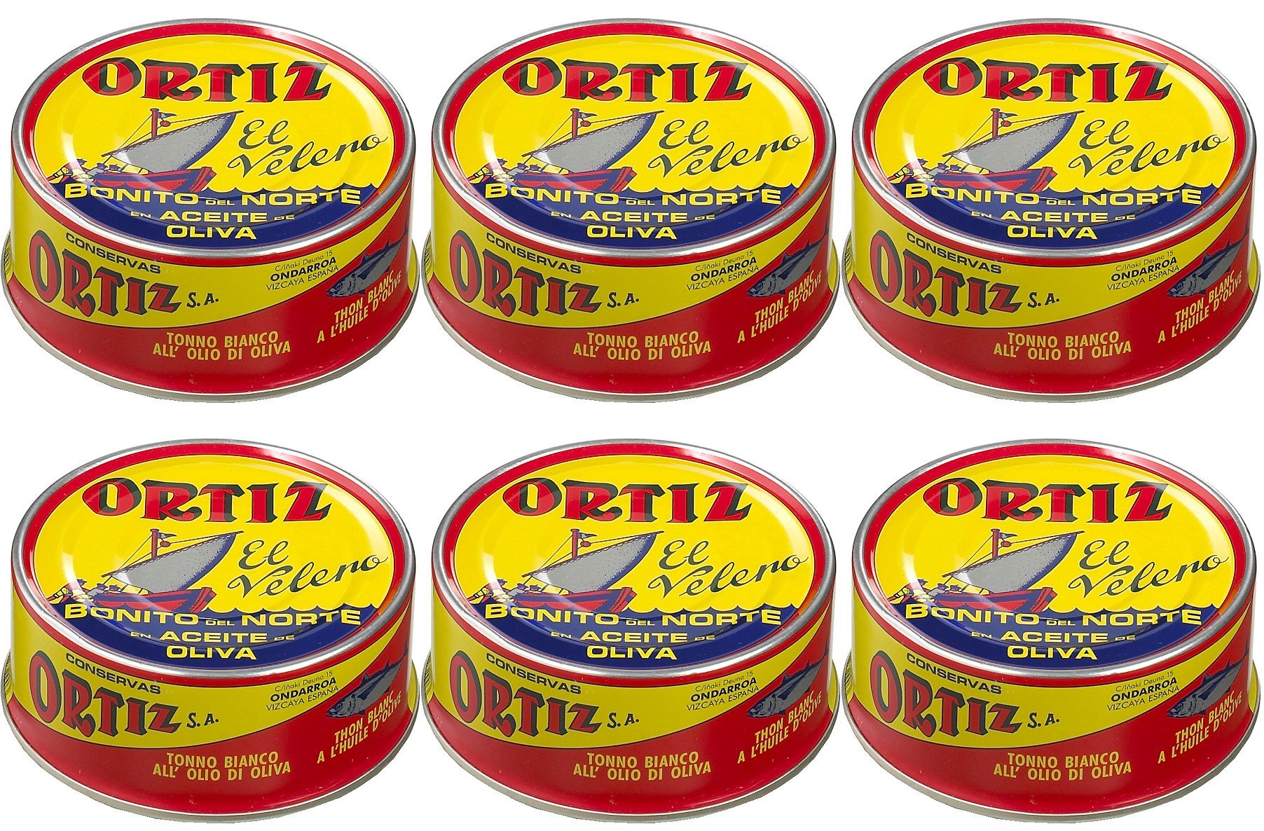 Loin of Bonito del Norte, fish caught one-on-one pole, aged in olive oil, which strengthens them and makes them tender.Witte tonijn in olijfolie 250g Ortiz (Pak van 6 stuks) Lendenen van Bonito del Norte, een-op-een paal gevangen vis, gerijpt in olijfolie, wat ze versterkt en ze zacht maakt.