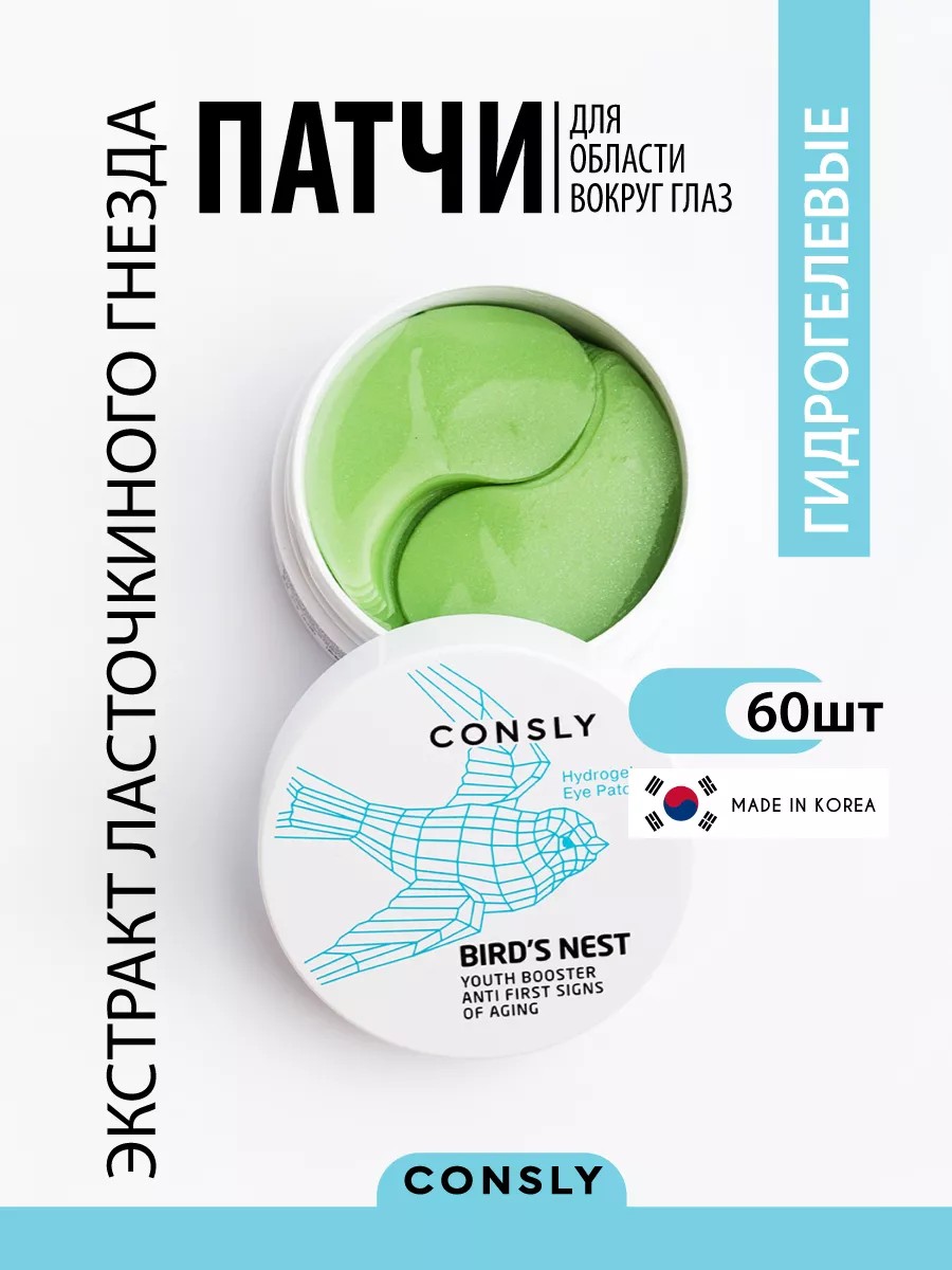Гидрогелевые патчи для глаз - идеальный элемент ухода, наполняющий кожу питательными веществами. Этот косметический набор 60 штук одноразовых Hydrogel Bird's Nest Eye Patches подходит для области вокруг глаз и эффективно работает от морщин, отеков и мешков под глазами. Сыворотка, которой они пропитаны включает экстракт ласточкиного гнезда, который насыщает аминокислотами и микроэлементами, что прекрасно дополняет антивозрастной эффект и помогает в борьбе против морщин. Церамиды (керамиды) помогают усилить защитный барьер кожи, смягчают и питают её. Масло ши и гиалуроновая кислота увлажняют и оказывают интенсивный питательный эффект, не допуская обезвоживания и сухости, восстанавливают эластичность и упругость, а также придают сияние. Комплекс растительных экстрактов помогает избавиться от темных кругов, придавая взгляду отдохнувший вид. Гидрогель делается из натурального сырья - конняку. Это растение обладает удивительными свойствами в области увлажнения, удержания влаги и охлаждает кожу. Патчи от отеков и мешков под глазами эффективно борются с тёмными кругами и морщинами на веках. Продукт также подходит для области носогубных складок (вокруг губ) и лба. Набор корейской косметики станет важным элементом ежедневного ухода за лицом. Идеальный подарок женщине, маме, подруге и девушке на день рождения, новый год и 8 марта. Рекомендуется к использованию в комплексе с серией уходовой корейской косметики CONSLY / Консли.