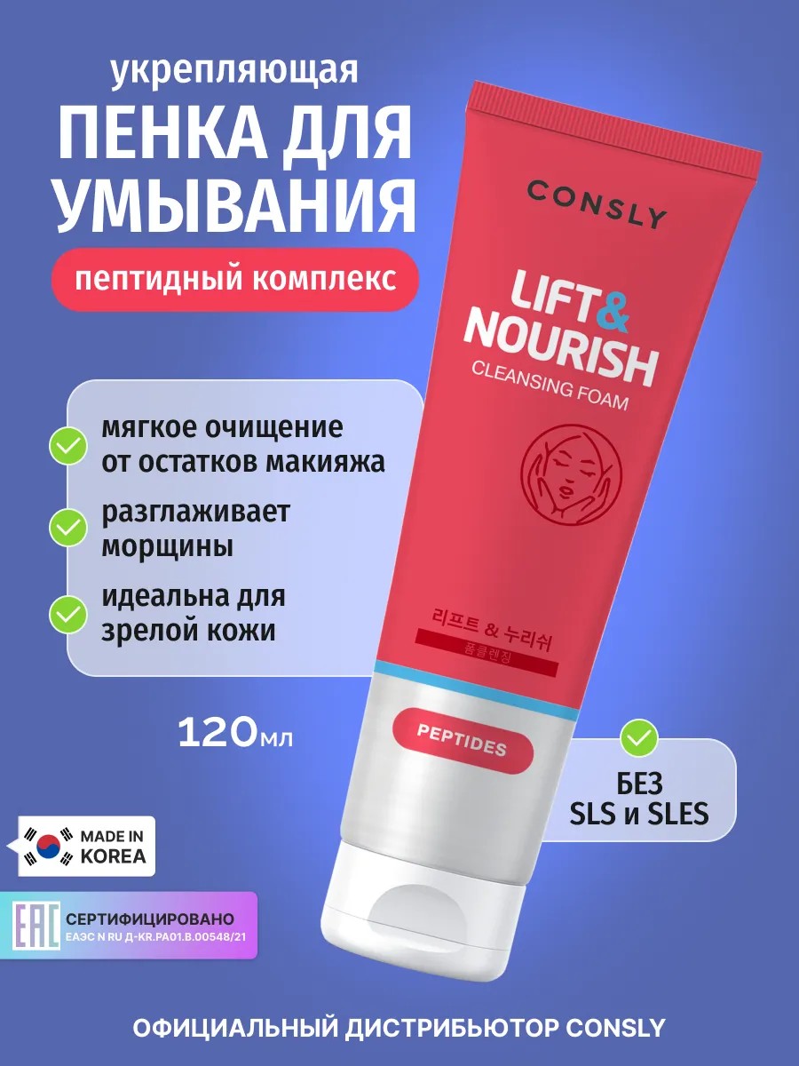 | Полное наименование товара | CONSLY Peptides Cleansing Foam “Lift&Nourish”, 120ml |