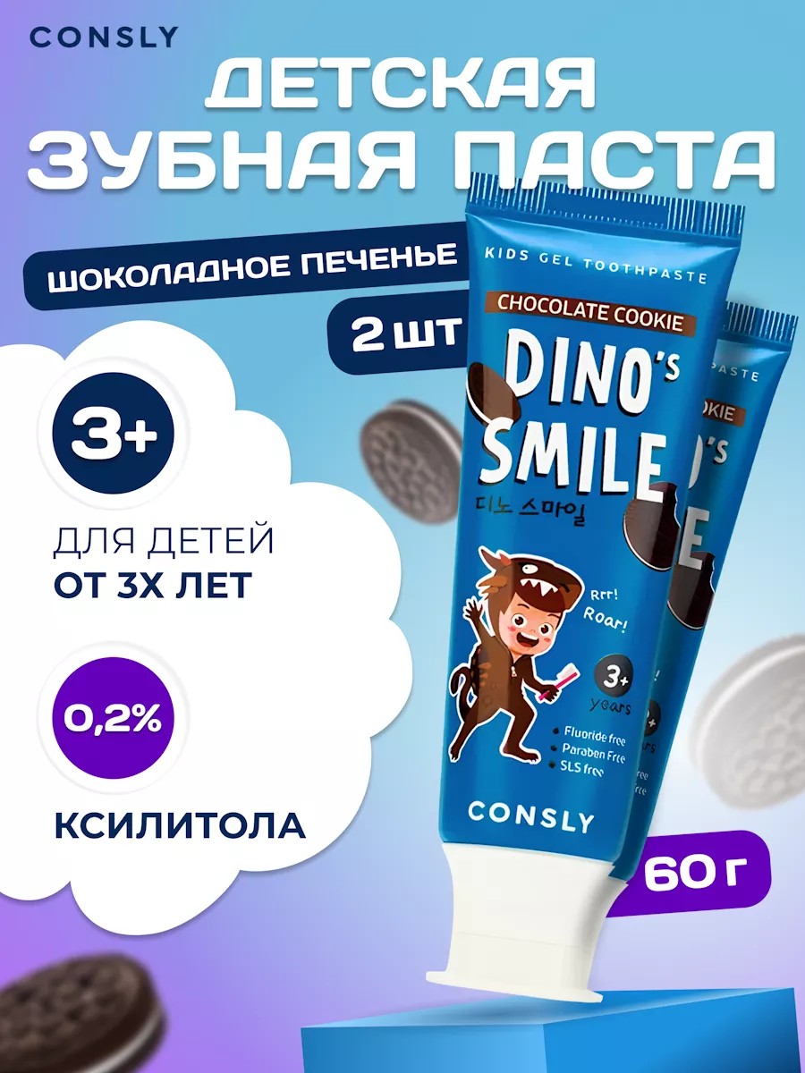 consly Набор Детская гелевая зубная паста c вкусом печенья 2*60 гр