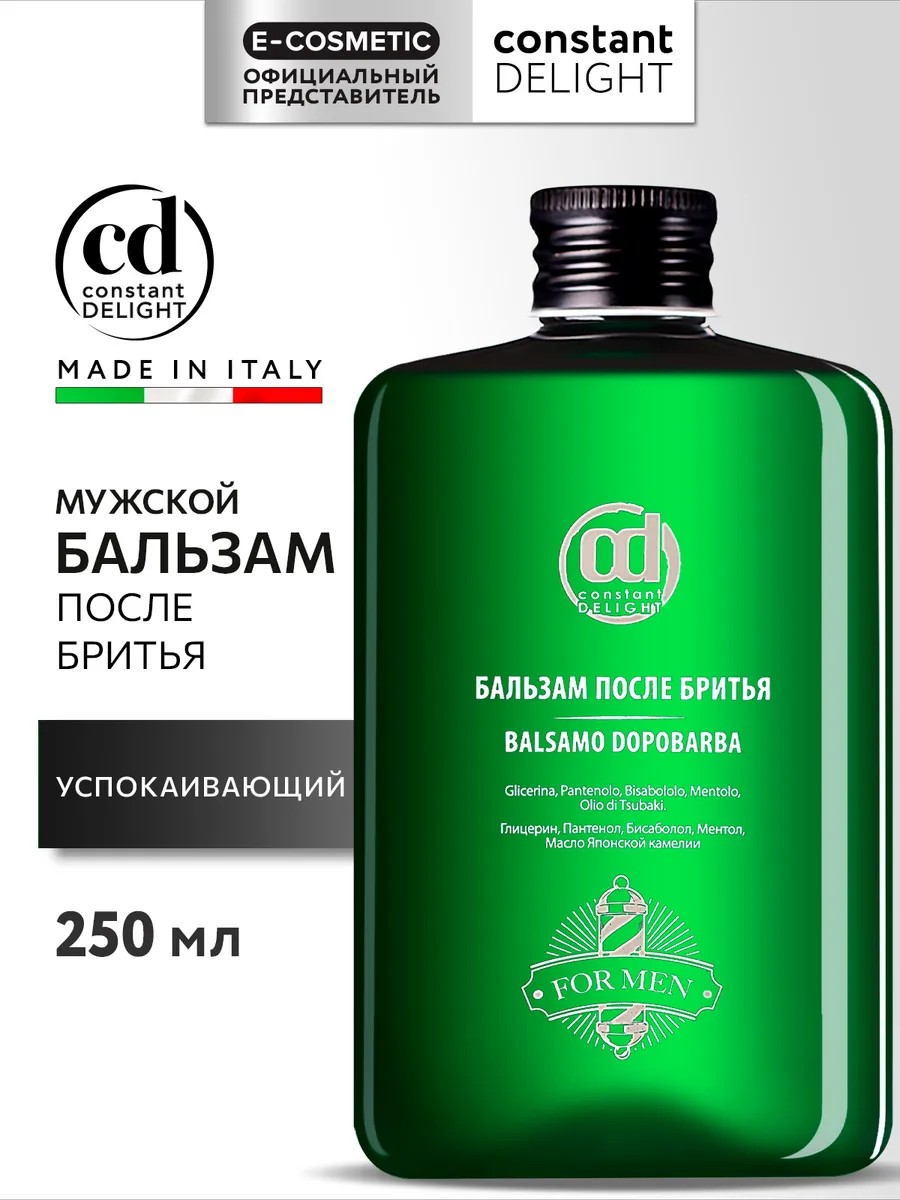 Профессиональный мужской бальзам BARBER CARE после бритья CONSTANT DELIGHT бережно ухаживает за кожей лица, склонной к раздражениям и покраснениям. Кремовая текстура бальзама подходит для всех типов кожи, включая чувствительную. Уникальная формула быстро восстанавливает баланс после контакта с лезвием, устраняет ощущение стянутости, предотвращает появление покраснений и устраняет сухость. Комплекс ухаживающих компонентов включает успокаивающий экстракт из цветов камелии, смягчающий пантенол и освежающий ментол. Ланолин и минеральное масло защищают от потери влаги. Благодаря аллантоину и бисабололу кожа становится более устойчивой к внешним факторам, восстанавливается и дышит. Бальзам быстро впитывается, не оставляет липкости, дарит ощущение комфорта на весь день. Обеспечивает лёгкое охлаждение, придаёт свежесть и ухоженный вид. Идеальный выбор для ежедневного ухода после бритья — помогает коже оставаться гладкой, ровной и защищённой.