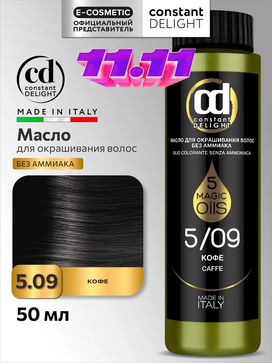 CONSTANT DELIGHT MAGIC 5 OILS professional oil dye is designed for gentle coloring, rich, long-lasting color, while caring for the health of your locks. Suitable for natural, gray, color-treated, and highlighted hair. Its unique, ammonia-free formula combines five valuable oils—argan, macadamia, avocado, jojoba, and cotton—to deeply nourish the hair structure, restoring softness, elasticity, and natural shine. The semi-permanent dye distributes evenly, providing a deep, rich tone.