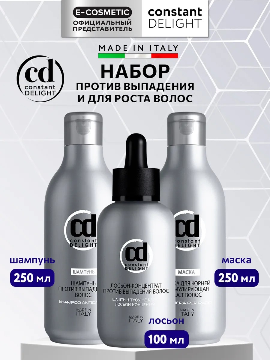 Профессиональный набор CONSTANT DELIGHT против выпадения для ослабленных, истонченных волос — комплексный уход, направленный на укрепление корней, восстановление структуры и стимулирование роста. В набор входят шампунь 250 мл, лосьон-концентрат 100 мл и питательная маска 250 мл для усиления результата.