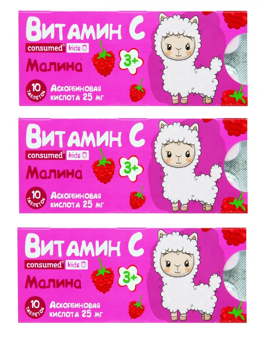 Consumed kids Аскорбиновая кислота Малина табл. 25мг N10 - 3 упак