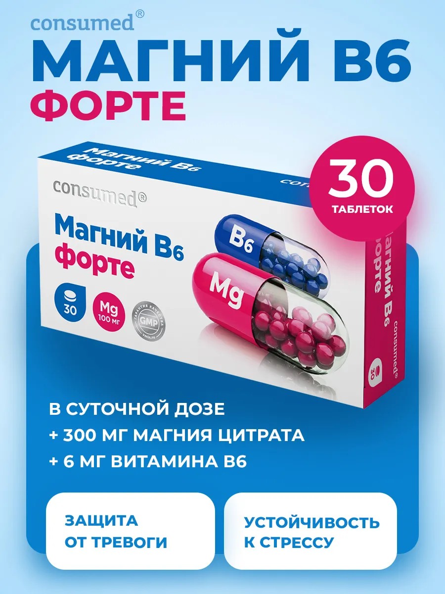 Consumed Магний B6 Форте. Комплекс витаминов с Магний цитрат + В6