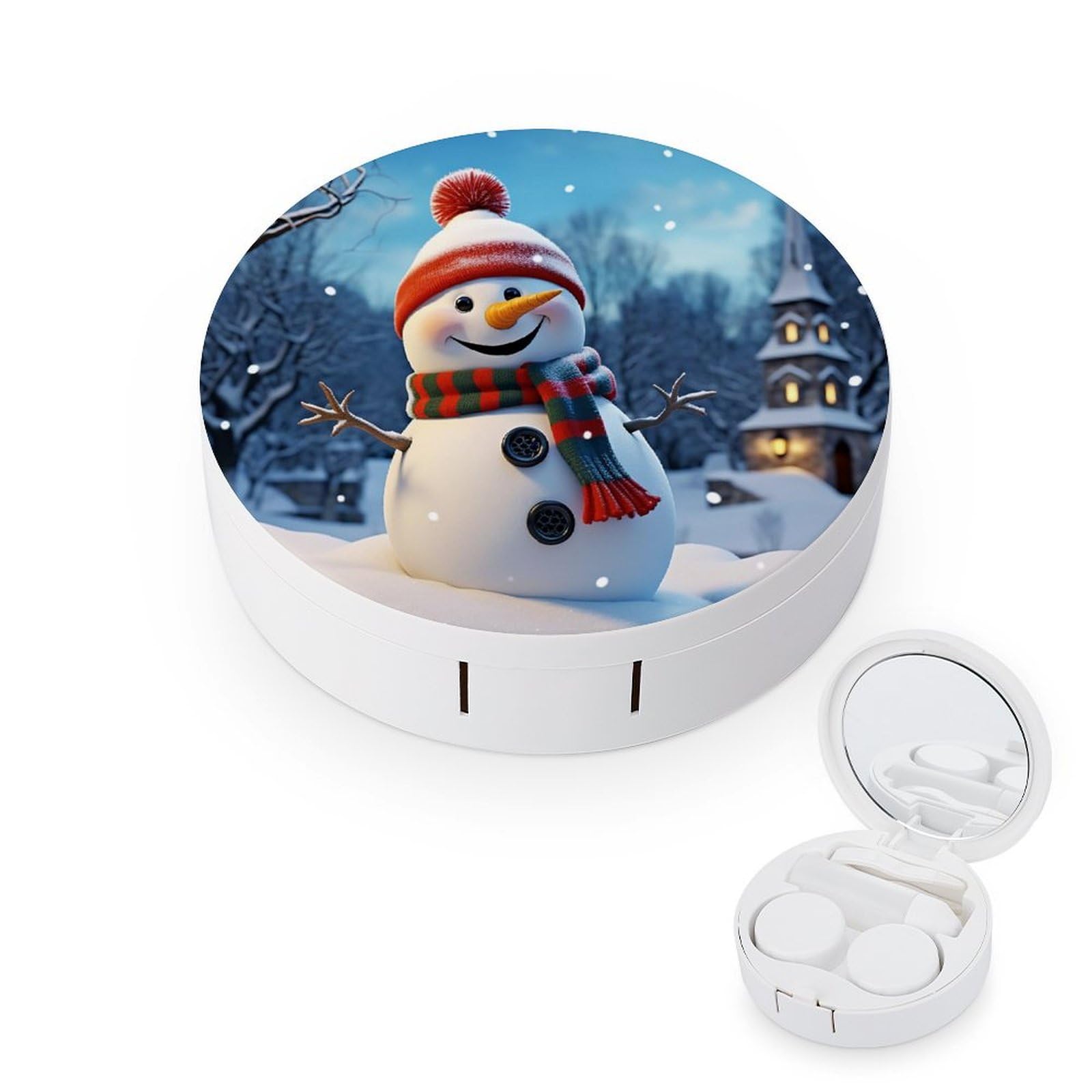 Contact Lens Case Happy Snowman Portable Travel Contact Lens Box Contact Lens Storage Box