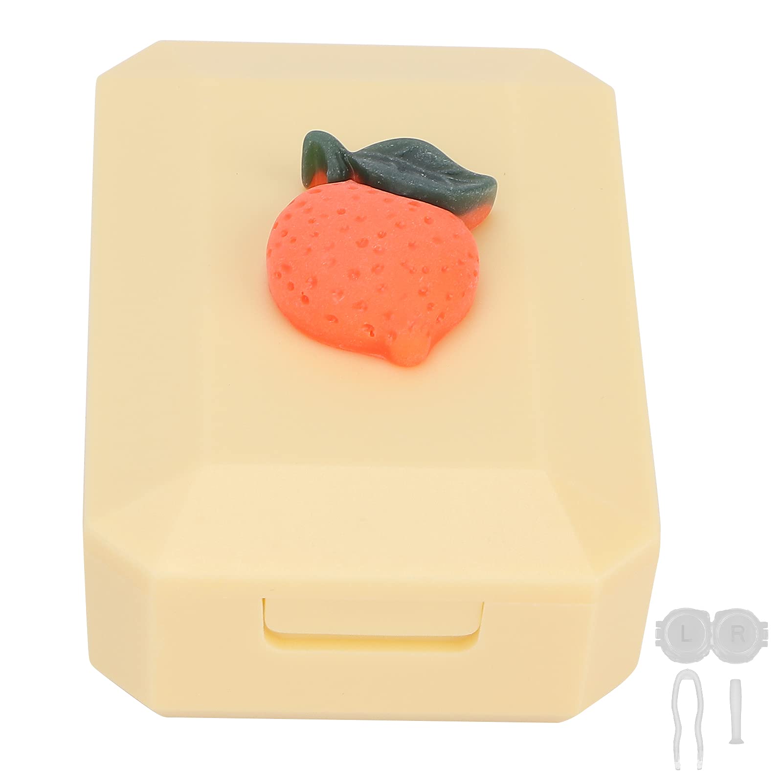 Kontaktlinsenbehälter, fällt nicht leicht ab, sicher mit Silikon auf der Oberseite der Pinzette, Kontaktlinsenbehälter für Zuhause, Arbeit, Reisen, Outdoor(Orange)