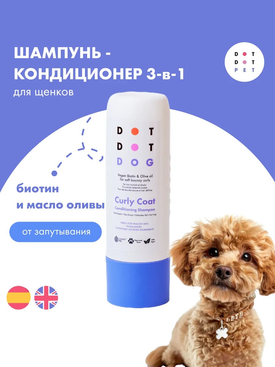 Шампунь и кондиционер для кудрявых собак DotDotPet — это профессиональное средство для ухода за шерстью таких пород, как пудель, мальтипу, бишон фризе, лабрадудль, спаниели, болонки и терьеры. Формула разработана специально для кудрявой и склонной к спутыванию шерсти.
