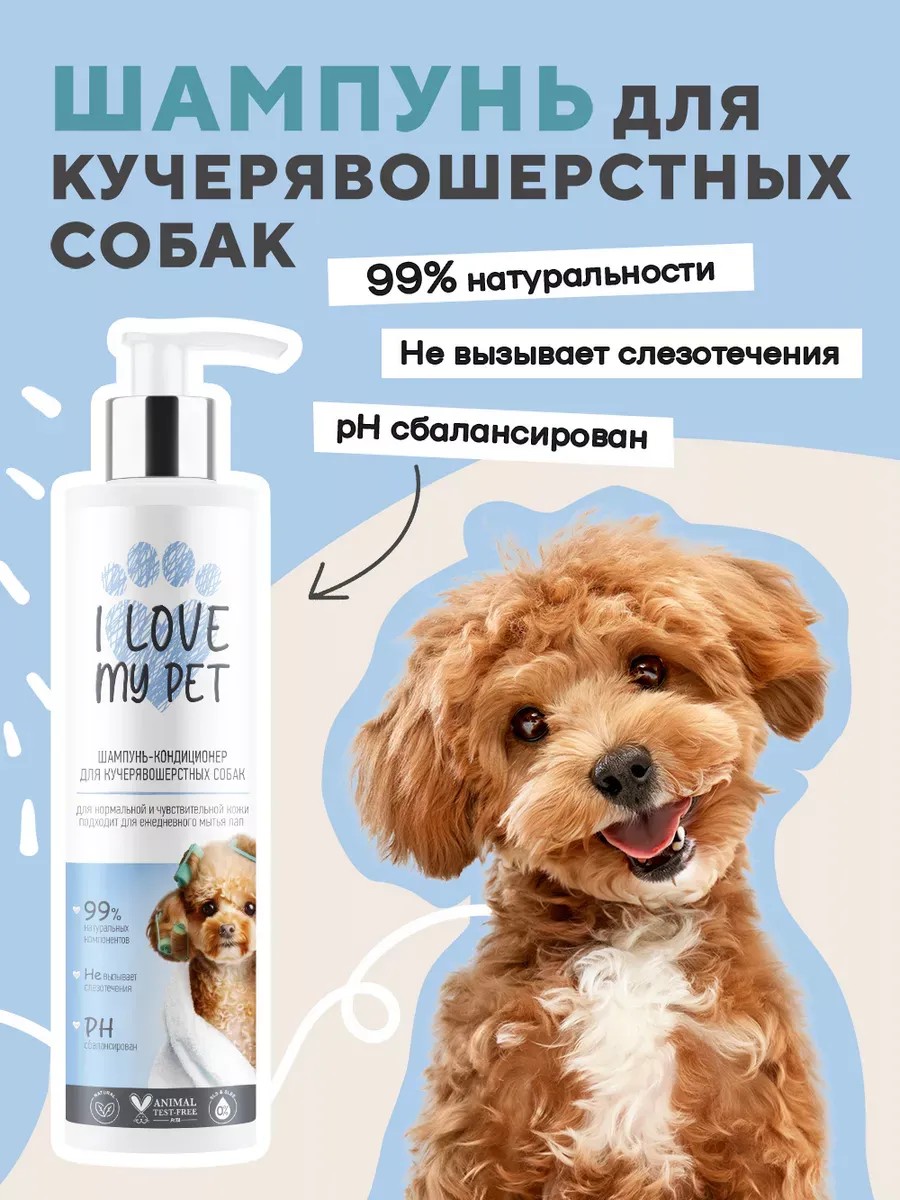 Устали распутывать у своего любимого хвостика колтуны? Из-за повышенной склонности к спутыванию кучерявая шерстка требует особенного ухода. Чтобы облегчить заботу о ней, бренд I LOVE MY PET разработал бережную формулу зоотовара для мытья кучерявошерстных взрослых собак и щенков. Средство 2 в 1 — шампунь и кондиционер для собак — создано на основе натуральных экстрактов, масел и бережных очищающих компонентов. Экстракты ромашки и чайного дерева в составе этого шампуня для собак успокаивают раздражения, оказывают противогрибковое действие, масло розмарина заживляет микротрещинки на коже и дезодорирует. Благодаря содержанию пантенола шампунь для животных от I LOVE MY PET увлажняет и укрепляет шерсть, придает ей блеск. Шампунь подойдет для шерсти пуделя, болонок и других кудрявых собак, избавит от необходимости использовать дополнительные средства во время мытья. Например, теперь не нужно отдельно искать кондиционер для мальтипу и других кучерявошерстых собак. Для собак разных пород важно, чтобы зоотовары не только деликатно заботились об их коже и шерсти, но и учитывали другие важные моменты. Шампунь с кондиционером не раздражает глаз питомца благодаря формуле мытья «без слез». Собаки, в заботе о которых помогают товары от I LOVE MY PET, получают особенно комфортный и безопасный уход. Результат после использования этого комплексного средства — кондиционера и шампуня для собак 2 в 1 — чистая, сильная и здоровая шерстка, бережно защищенная от колтунов. Товары для собак, созданные с заботой о них, принесут радость не только четвероногим, но и внимательным хозяевам. У бренда I LOVE MY PET есть все необходимое для собак, чтобы они чувствовали любовь через заботу!