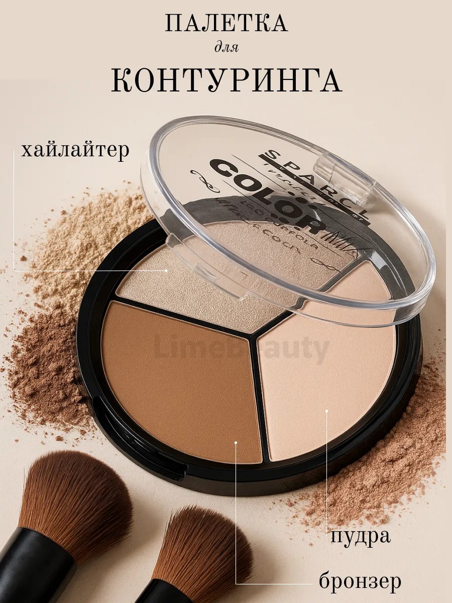 Палетка для контуринга с тремя оттенками — бронзер, хайлайтер и фиксирующая пудра — ваш быстрый способ придать лицу четкость, свежесть и естественное сияние без сложных техник. Тонкоизмельчённые пигменты ложатся шелковистой вуалью, легко наслаиваются и растушёвываются до невидимых переходов, сохраняя кожу живой и ухоженной. Одна палетка — полный набор для тонкого скульптурирования на каждый день и выразительного макияжа для особого случая.