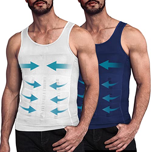 Men's 2 Pack Slimming Body Shaper Vest Compression Shirt Sleeveless Abdomen