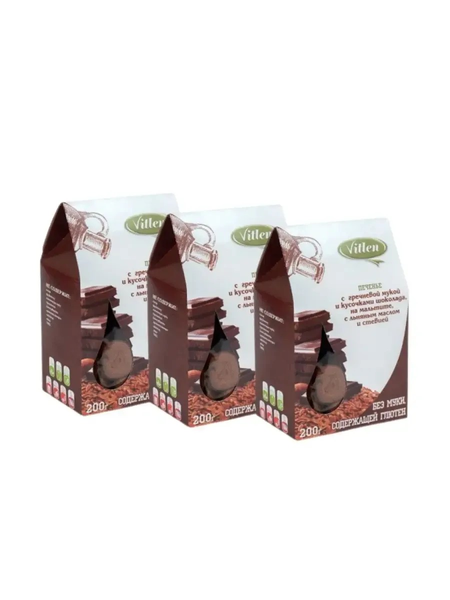 | Комплектация | Печенье безглютен.с гречневой мукой и шоколадом 200 гр - 3 шт |
