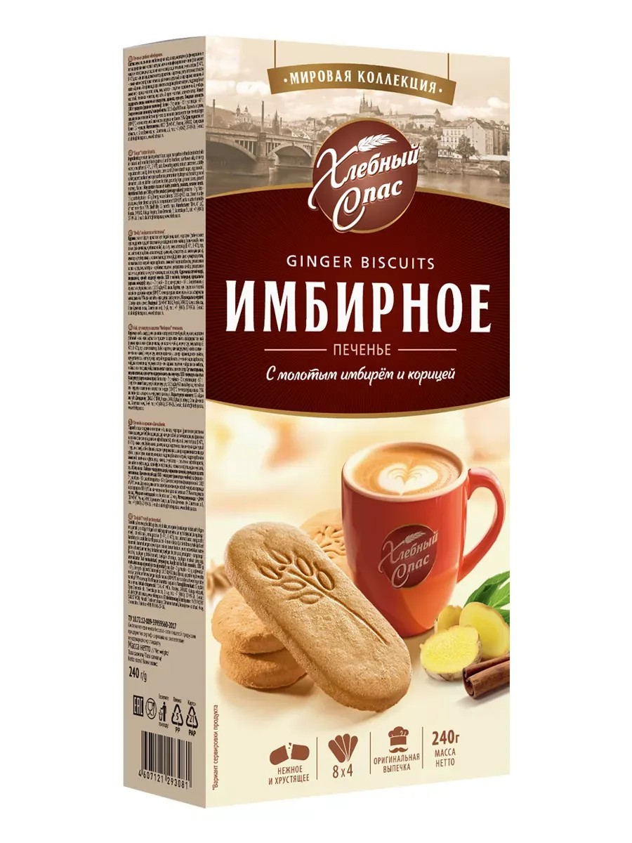 Gingerbread Cookies with Fructose and Apples, 240g, are original cookies with aromatic apple and tart ginger – the choice of those who care about healthy eating but remain a true gourmet. These unique, crispy cookies, made with a natural sweetener, contain whole-grain rye flour and apple fiber, which provide long-lasting satiety and curb appetite. Ground cinnamon and ginger add a spicy flavor. These cookies combine bold flavor with nutrition. Each cookie is individually packaged with 8 cookies, making them easy to take on the go, to work, or to school. Lenten product. Shelf life: 12 months. Gingerbread Cookies from the World Collection line are made according to an original recipe with ground ginger and cinnamon. Ground ginger, cinnamon, nutmeg, and cloves add a spicy flavor to the cookies. They're a perfect accompaniment to a cup of hot tea or aromatic coffee, as well as milk drinks. They offer an unforgettable taste and enjoyment. Each cookie is individually packaged with 5 cookies. Shelf life is 12 months.